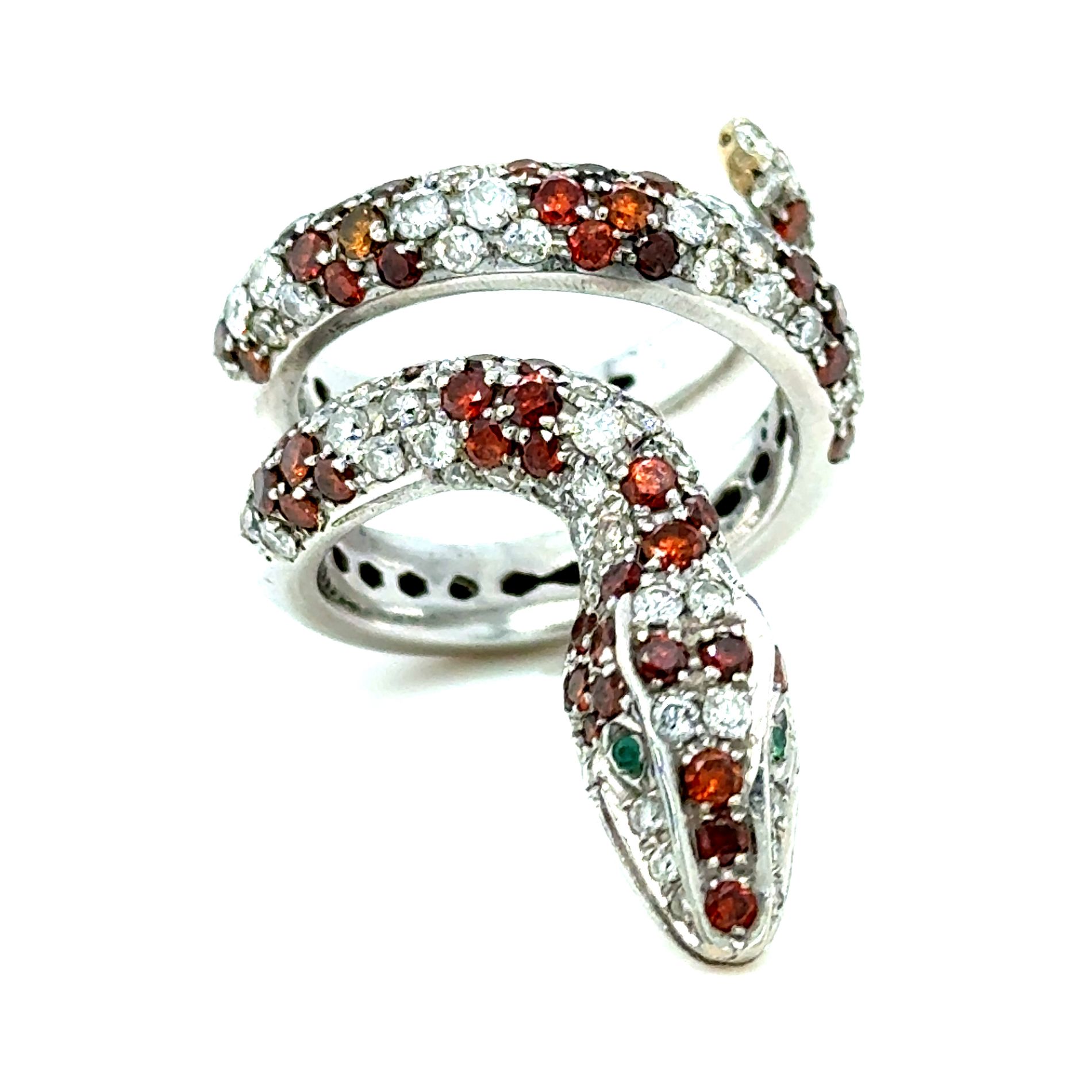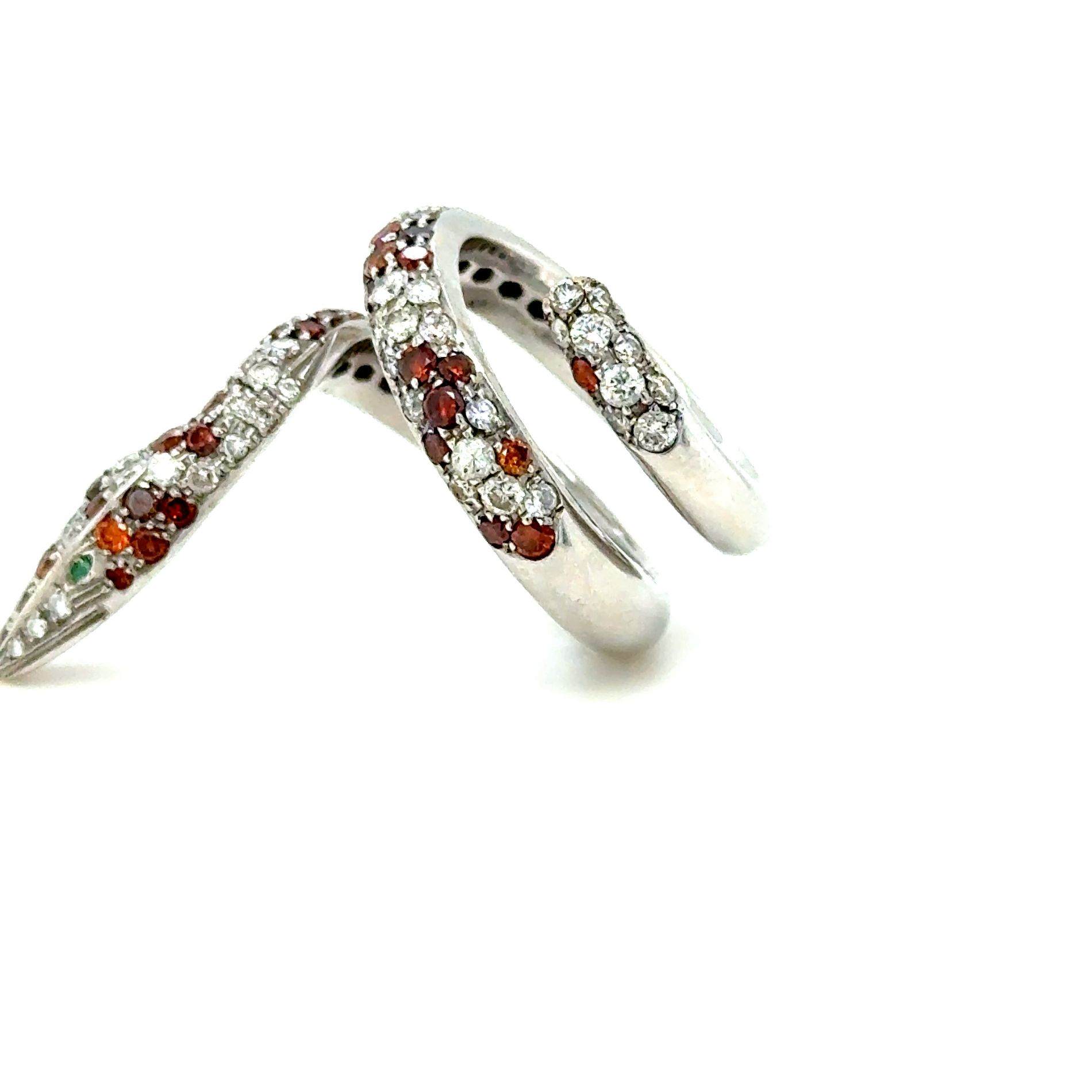 ANELLO SERPENTE IN ORO BIANCO 18K 14,63 GRAMMI CON DIAMANTI NATURALI 1,60 CT COLORE F PUREZZA SI E DIAMANTI COLORATI PER 1,40 CT PUREZZA VS-SI - MISURA 56 - DN-RS - COMMISSIONE D’ASTA 25%