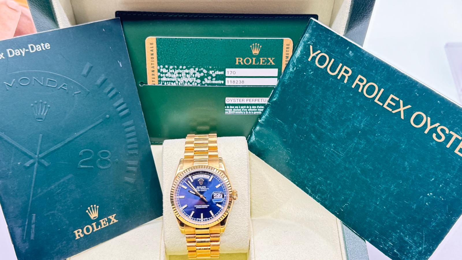Marca Rolex Modello (Orologio) Day-Date 36 Numero di referenza 118238 Carica Automatico Materiale della cassa Oro giallo Materiale cinturino Oro giallo Anno di produzione 2007 Condizione Ottimo (di seconda mano, segni di usura assenti o appena visibili) Corredo documenti originali, no box Carica Automatico Materiale della cassa Oro giallo Diametro 36 mm Impermeabile 10 ATM Materiale lunetta Oro giallo Vetro Vetro zaffiro Numeri sul quadrante Senza numeri Cinturino Materiale cinturino Oro giallo Colore cinturino Oro Materiale chiusura Oro giallo - COMMISSIONE D’ASTA 25%