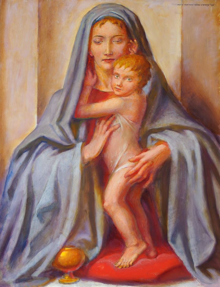 CAFFARO RORE MARIO Torino 1910 - 2001 "Madonna con Bambino" 1991 60x46 olio...