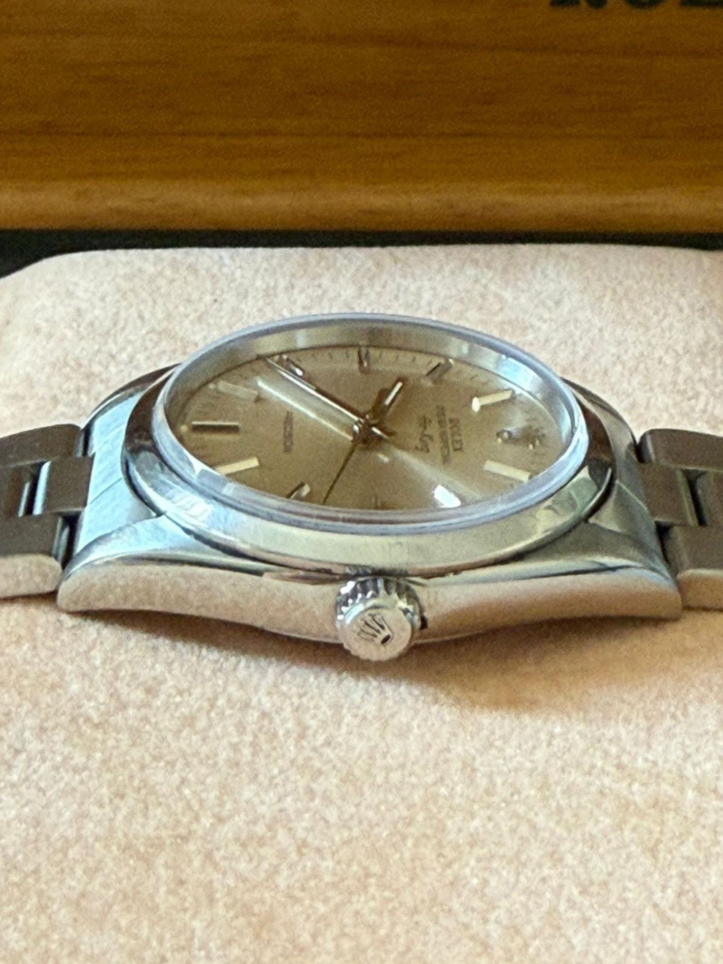 Marca Rolex Modello (Orologio) Air King Numero di referenza 14000 Carica Automatico Materiale della cassa Acciaio Materiale cinturino Acciaio Anno 1993 Condizione Ottimo (di seconda mano, segni di usura assenti o appena visibili) documenti originali, no box Carica Automatico Cassa Materiale della cassa Acciaio Diametro 34 mm Impermeabile 10 ATM Materiale lunetta Acciaio Vetro Vetro zaffiro Cinturino Materiale cinturino Acciaio Colore cinturino Acciaio Chiusura Déployante Materiale chiusura Acciaio - COMMISSIONE D’ASTA 25%
