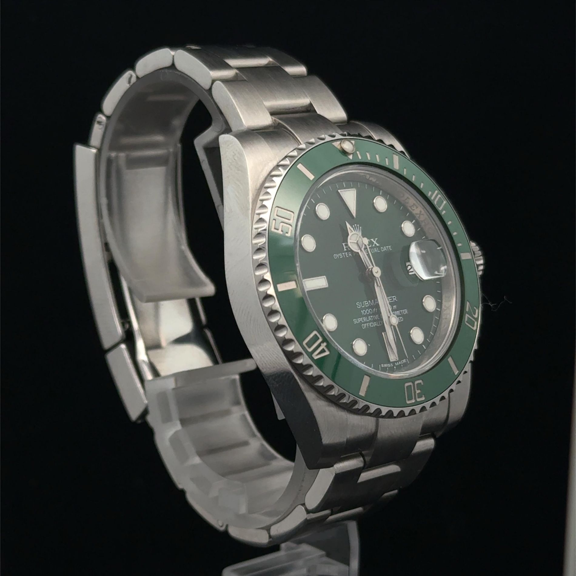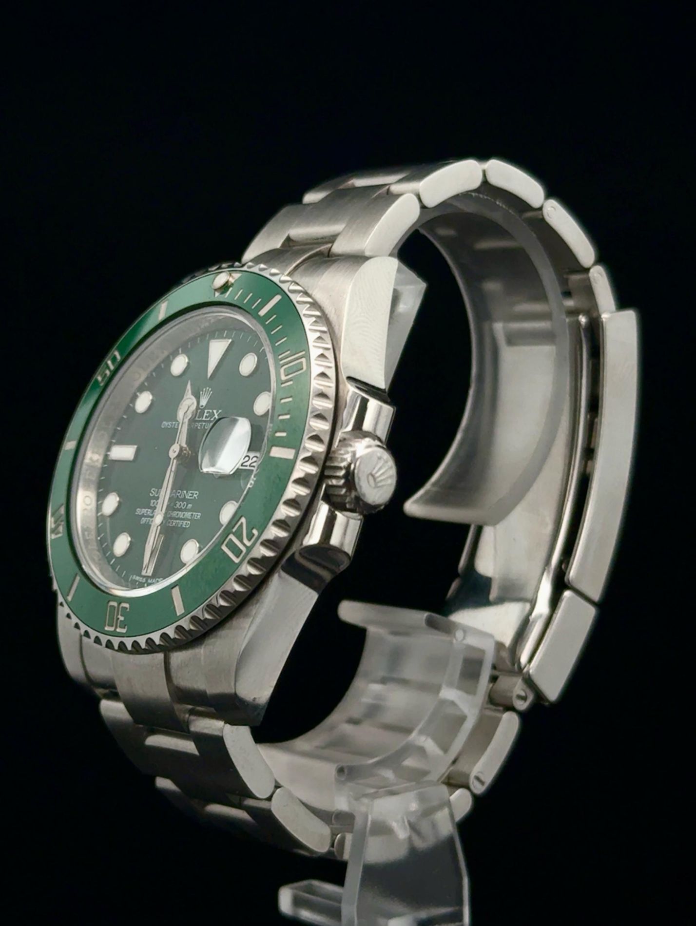 Marca Rolex Modello (Orologio) Submariner Date Numero di referenza 116610LV Carica Automatico Materiale della cassa Acciaio Materiale cinturino Acciaio Anno di produzione 2011 Condizione Ottimo (di seconda mano, segni di usura assenti o appena visibili) Corredo documenti originali Rolex, no box la scatola utilizzata solo per fotografie non è in vendita Carica Automatico Cassa Materiale della cassa Acciaio Diametro 40 mm Impermeabile 30 ATM Materiale lunetta Ceramica Vetro Vetro zaffiro Quadrante Nero Numeri sul quadrante Senza numeri Cinturino Materiale cinturino Acciaio Colore cinturino Acciaio Chiusura Déployante Materiale chiusura Acciaio Funzioni Data Altro Secondi centrali, Corona a vite - COMMISSIONE D’ASTA 25%