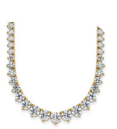 COLLANA TIPO TENNIS IN ORO GIALLO 14K PESO 20 GRAMMI CON DIAMANTI LAB GROWN A SCALARE TAGLIO BRILLANTE PER 5,00 CT COLORE E-F PUREZZA VS - 202/Y GRADUATING - COMMISSIONE D’ASTA 25%