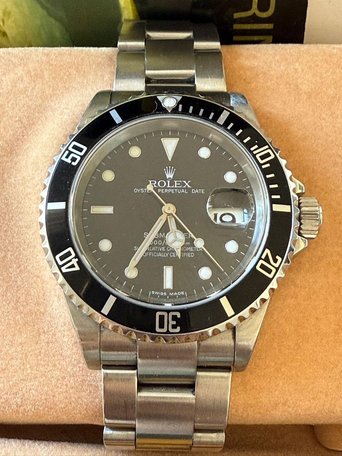 Marca Rolex Modello (Orologio) Submariner Date Numero di referenza 16610 Carica Automatico Materiale della cassa Acciaio Materiale cinturino Acciaio Anno di produzione 2006 Condizione Ottimo (di seconda mano, segni di usura assenti o appena visibili) Corredo Con documenti originali, senza scatola originale Carica Automatico Cassa no fori Materiale della cassa Acciaio Diametro 40 mm Impermeabile 30 ATM Materiale lunetta Acciaio Vetro Vetro zaffiro Quadrante Nero Numeri sul quadrante Senza numeri Cinturino Materiale cinturino Acciaio Colore cinturino Acciaio Chiusura Déployante Materiale chiusura Acciaio - COMMISSIONE D’ASTA 25%