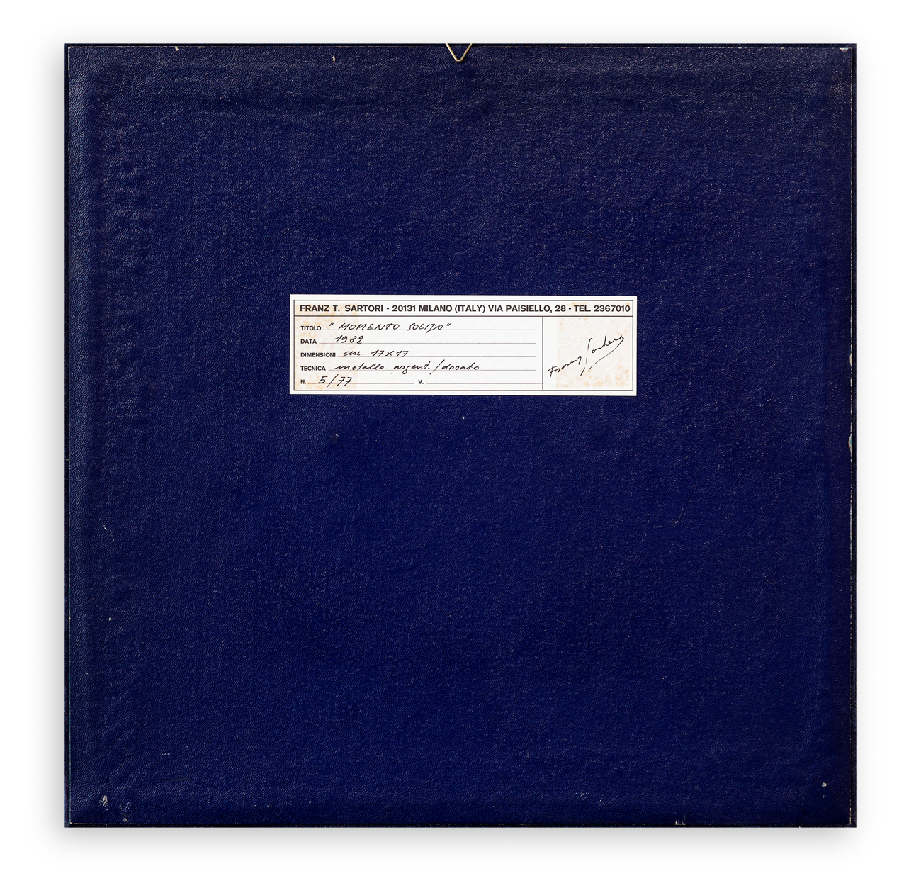 Firma e numerazione (Esemplare 5/77) incise al fronte