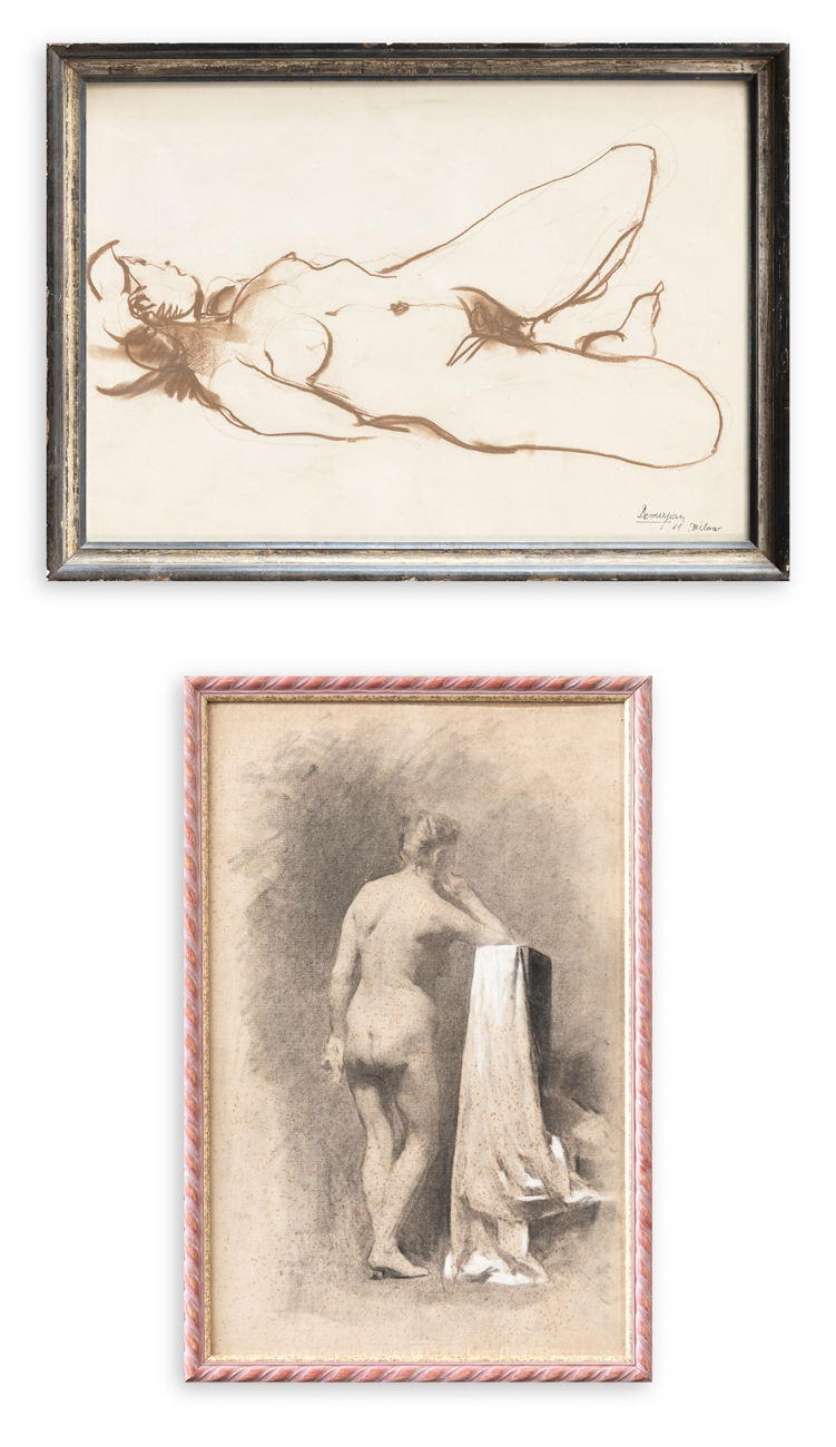ANONIMO Lotto unico di 2 opere: Senza Titolo Carboncino e biacca su carta cm...
