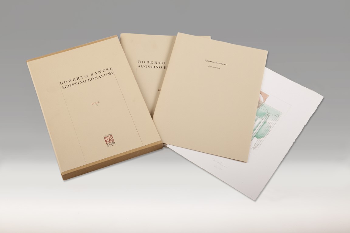 cofanetto Duale n.13 completo contenente due incisioni di Agostino Bonalumi con testo di Roberto Sanesi