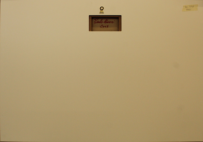 PAOLO MASI, 2019, tecnica mista su cartone ondulato spessorato, 70x100 cm, con teca 71x102x3 cm, peso 7 kg, autentica su foto dell'artista. Al verso: firma e anno. Certificato di provenienza della Daliano Ribani Arte.Opera protetta da teca in plexiglass in omaggio.
