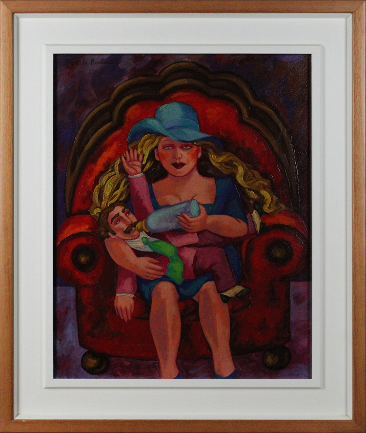 DANIELA ROMANO, " Maternità", Olio su tela, Dim. 50x40, Al verso: titolo e firma, Al fronte: firmato in alto a sinistra