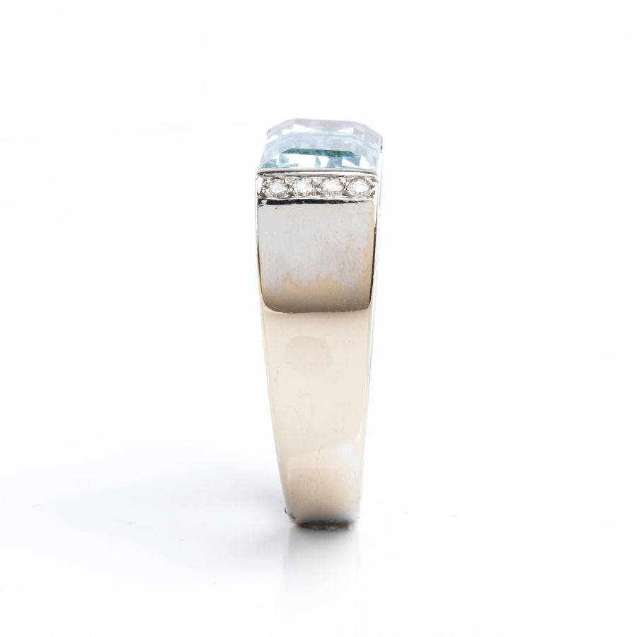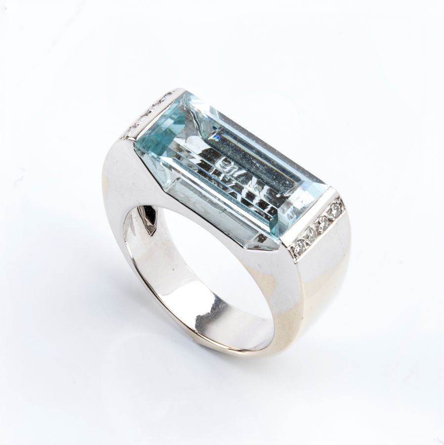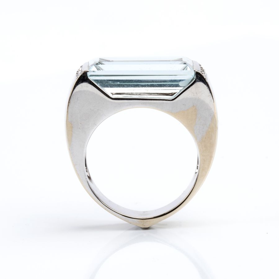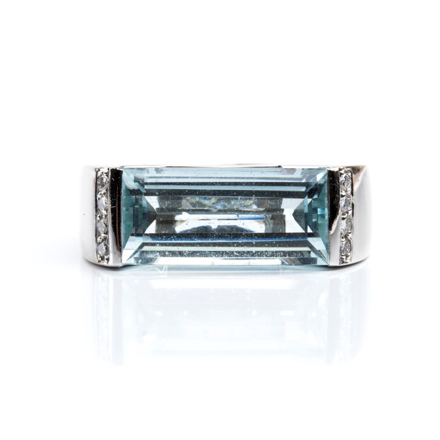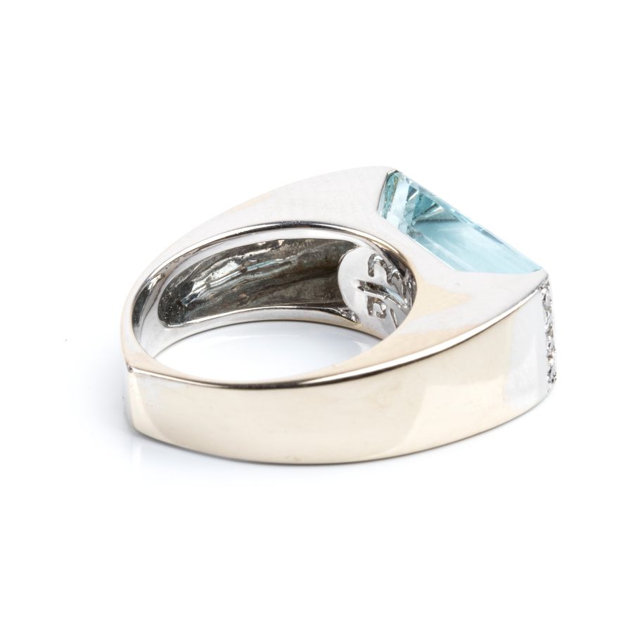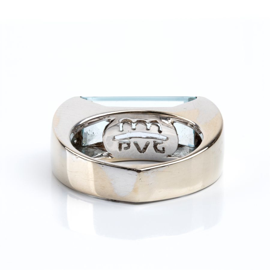 modellato come una fascia in oro bianco 18k, incastonato con acquamarina affiancata da diamanti. Firmato "PVG".