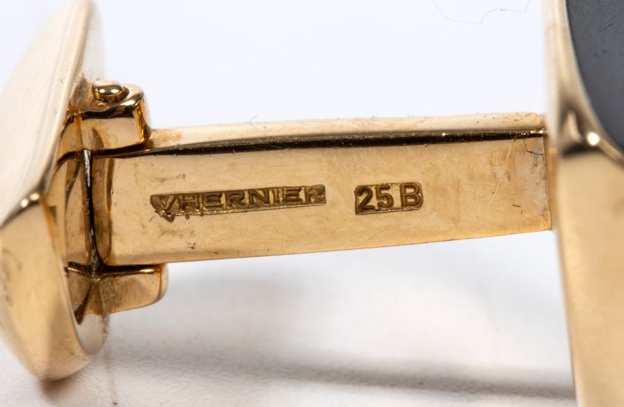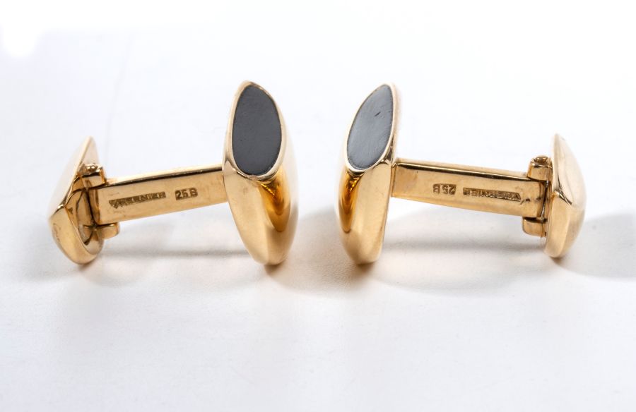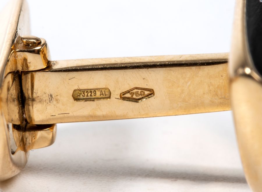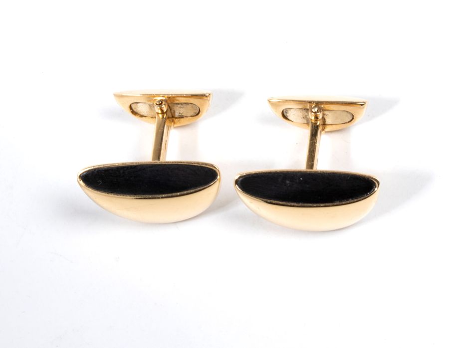 in oro giallo 18k, ciascuno a forma di mezza luna in oro giallo 18k, con un lato incastonato con lastra di diaspro nero.