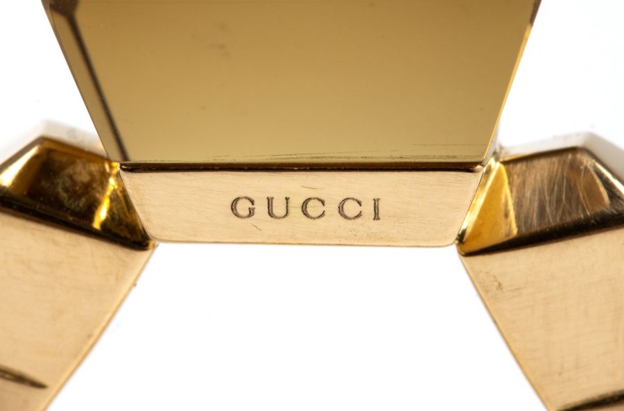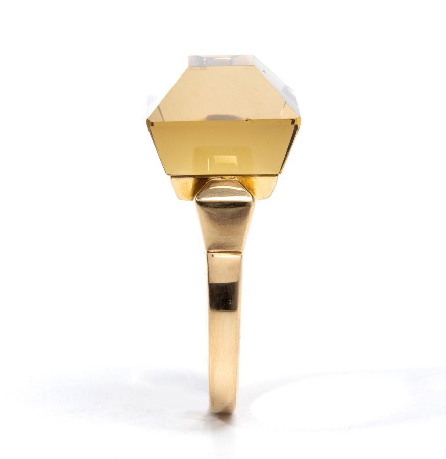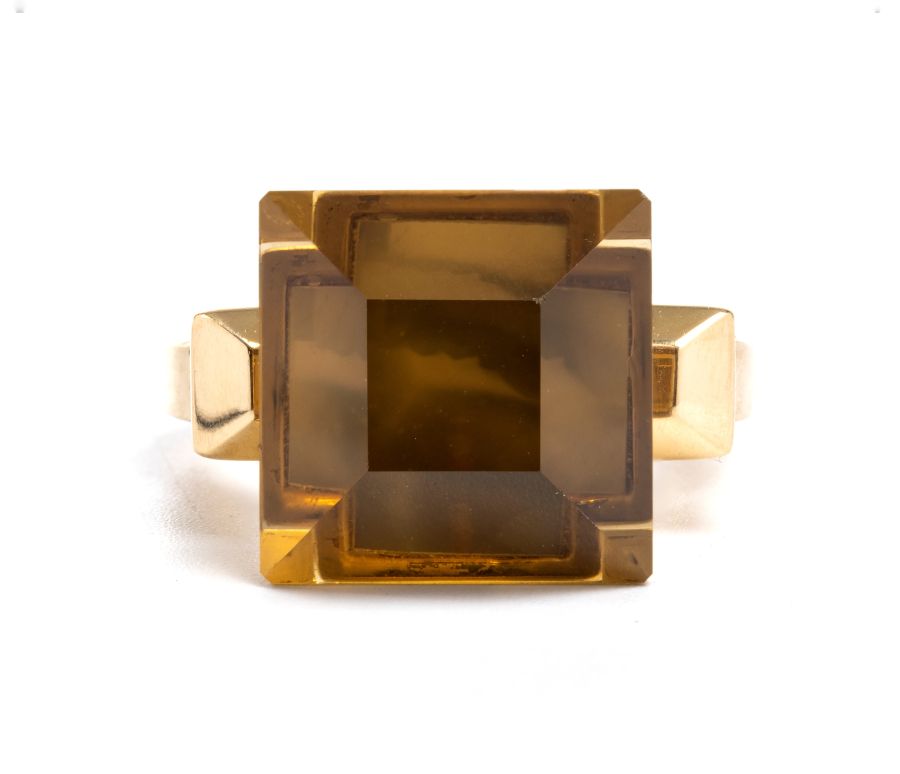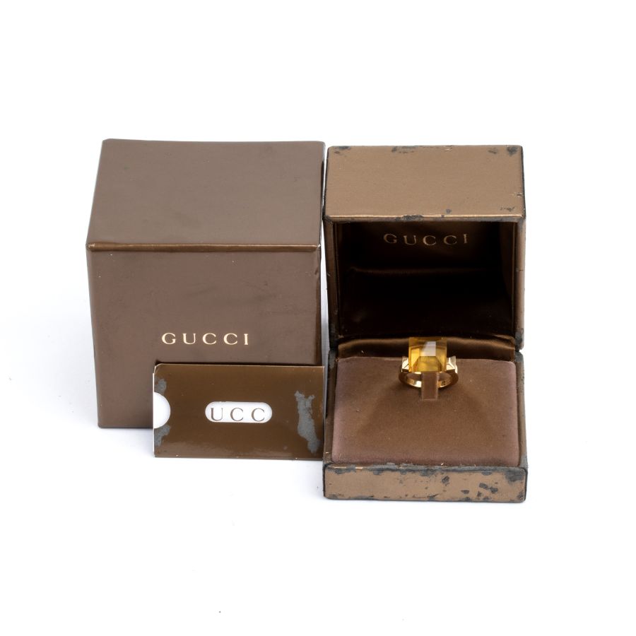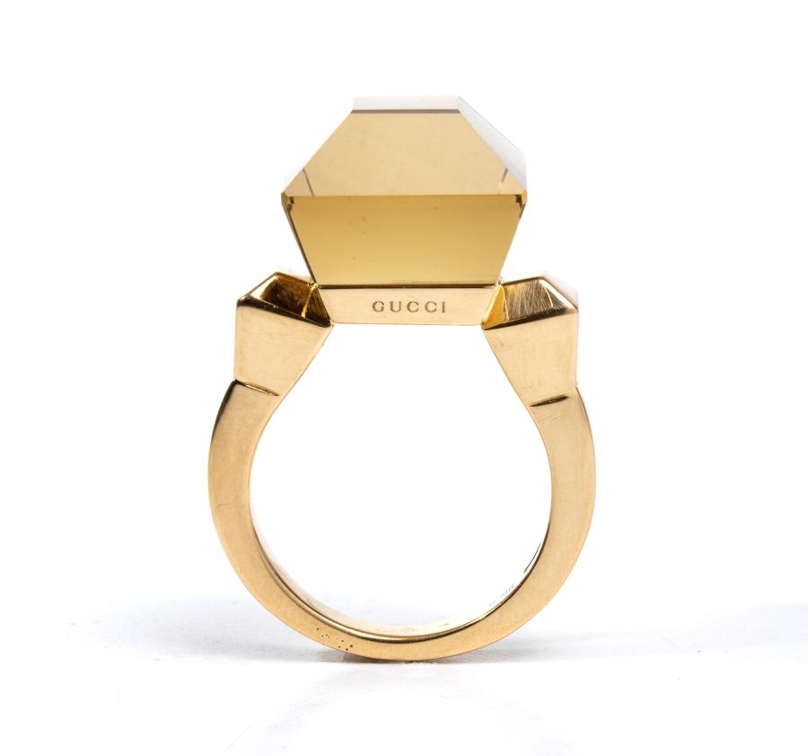 in oro giallo 18kt, incastonato con quarzo fumé di forma geometrica. Firmato GUCCI.