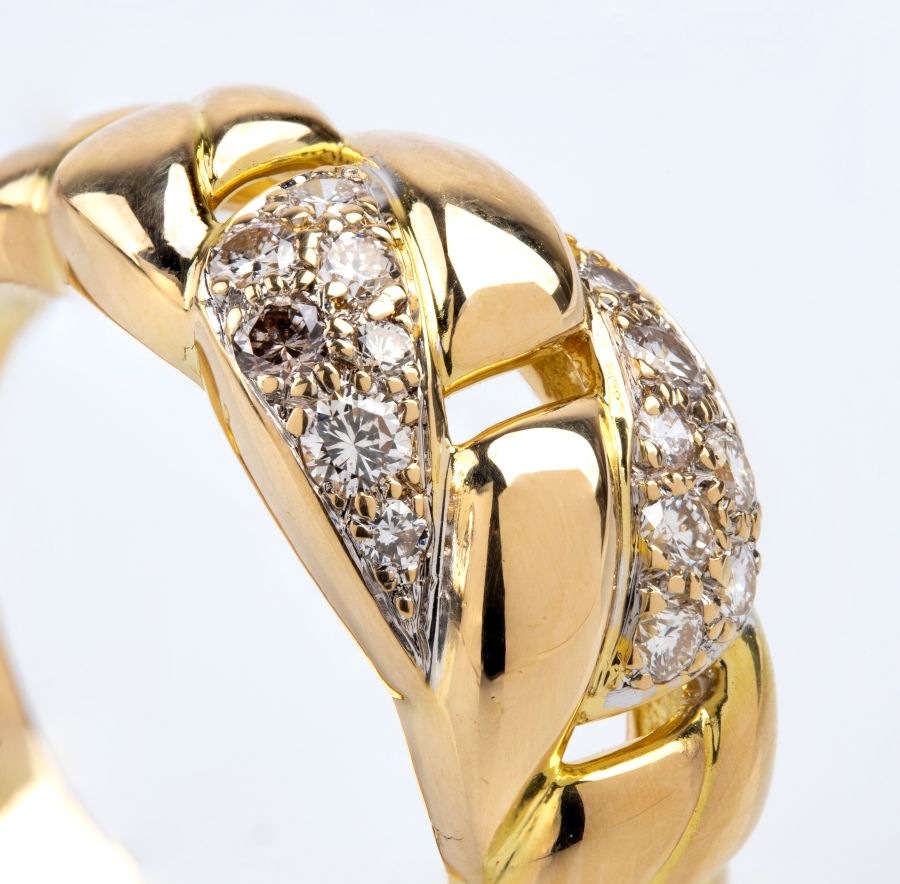 oro giallo 18k, motivo di nastri intrecciati in diamanti. Reca firma "CARTIER".