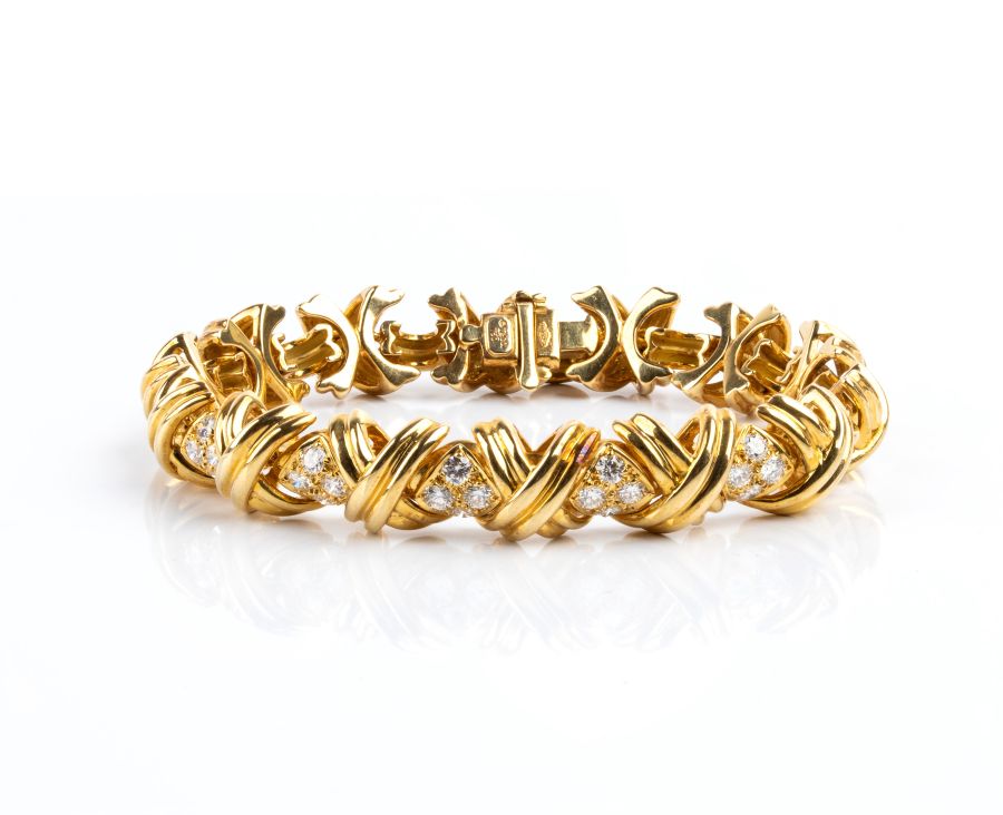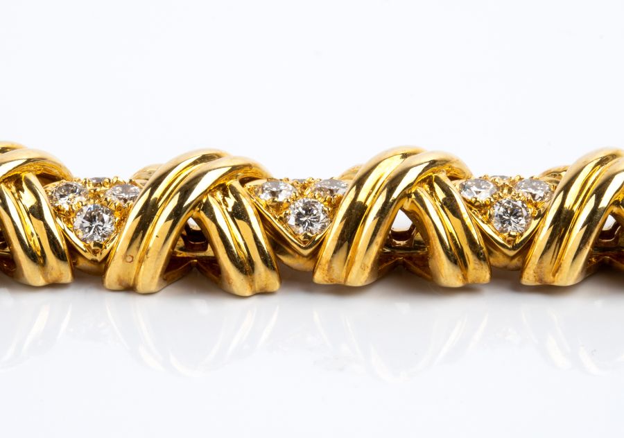 Lotto 12 | TIFFANY & CO.® Collezione: "Signature X". Bracciale in oro giallo e diamanti