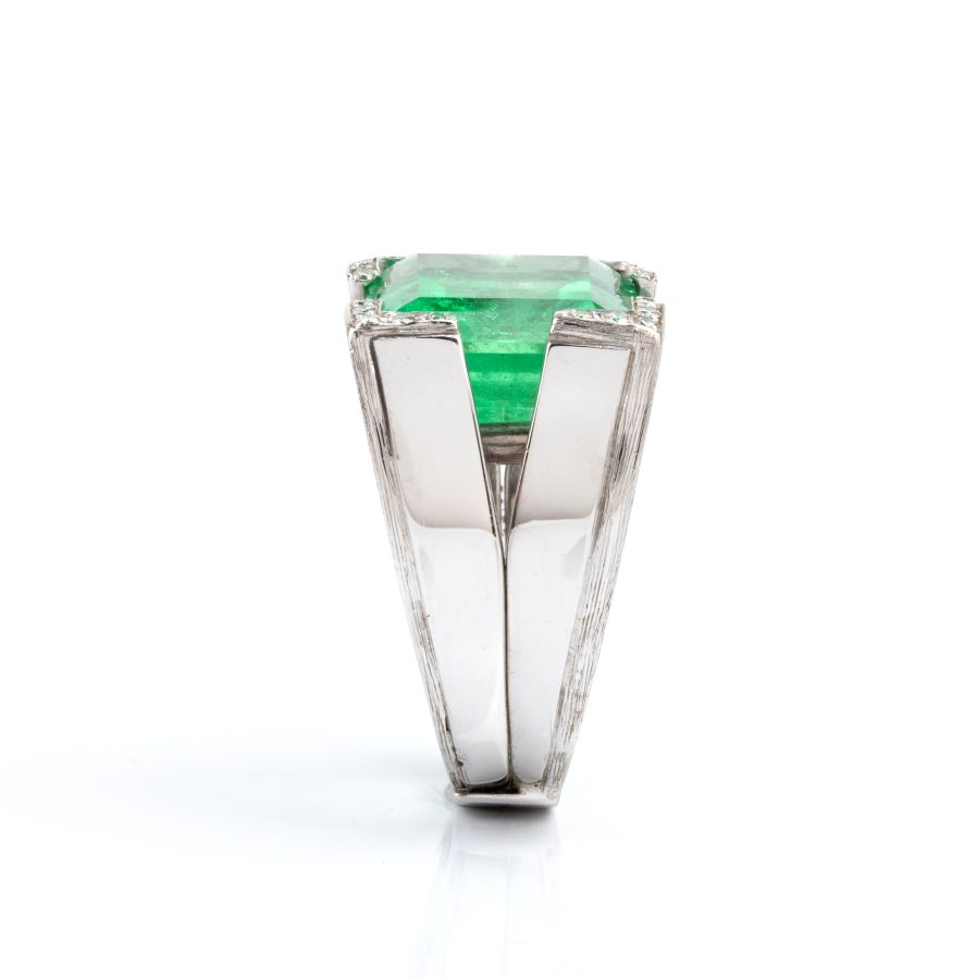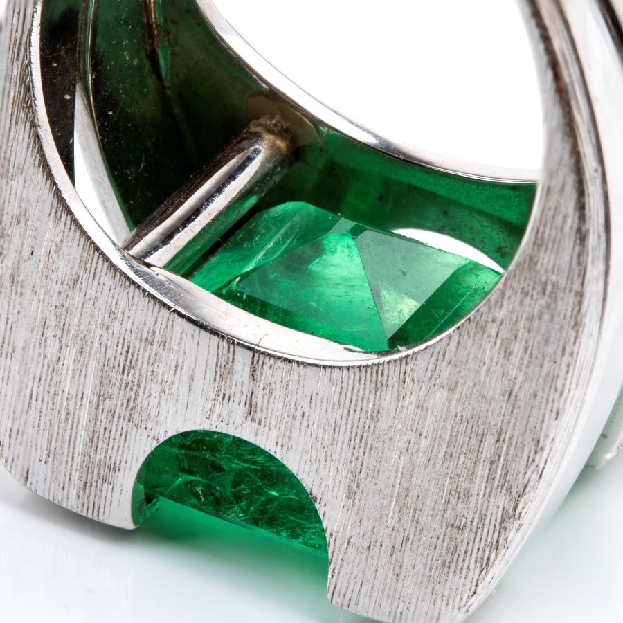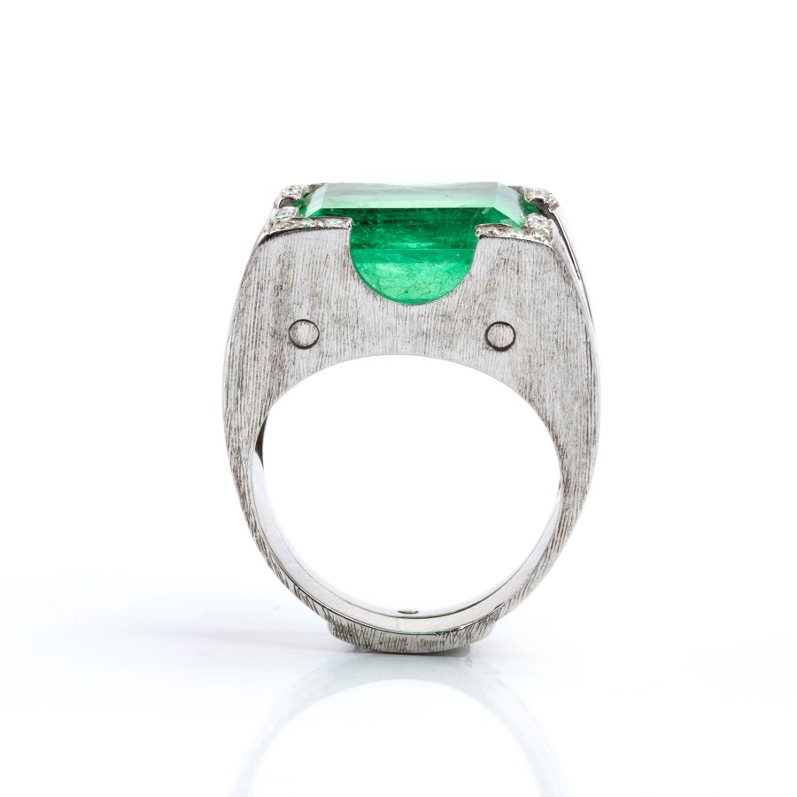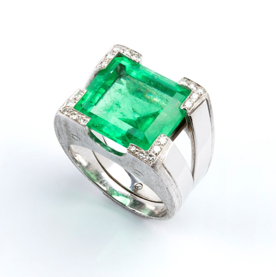 Anello in oro bianco con smeraldo e diamanti