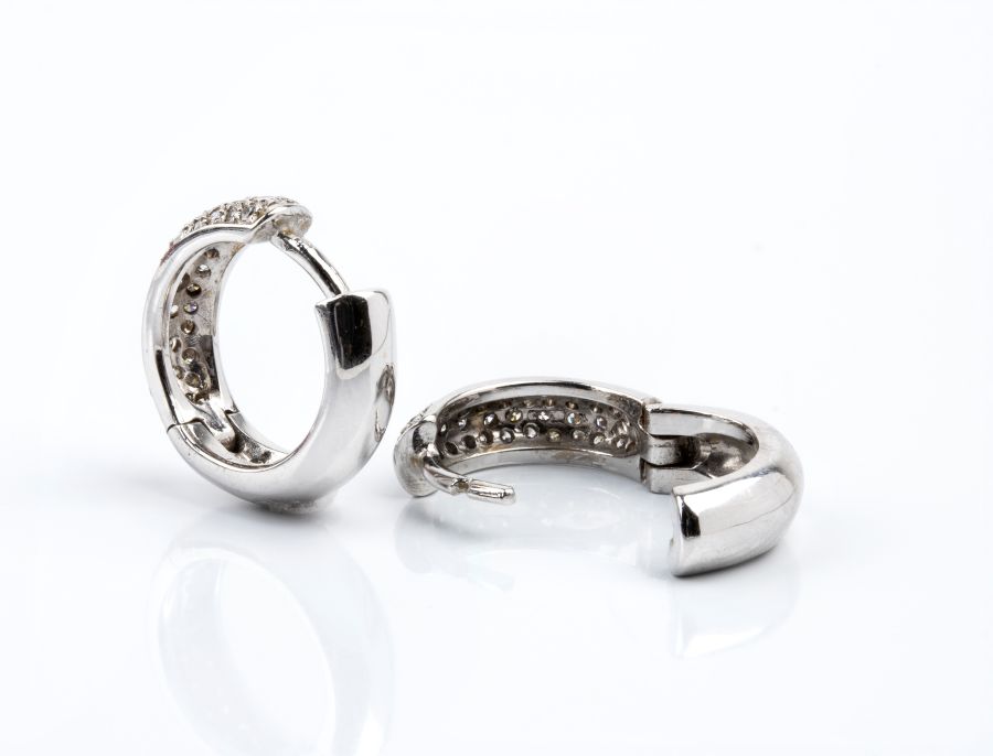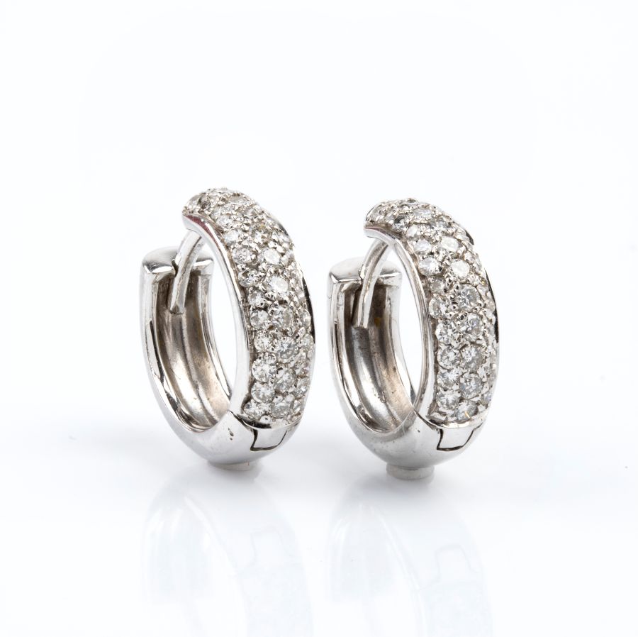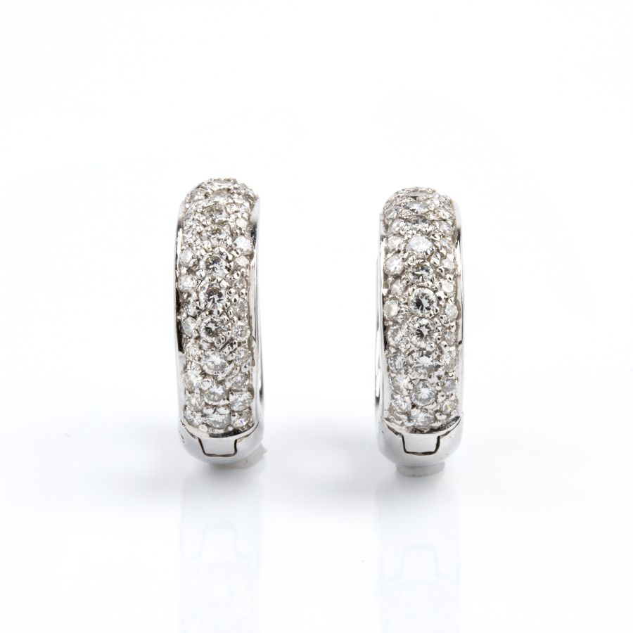 Paio di orecchini a cerchio in oro bianco e diamanti