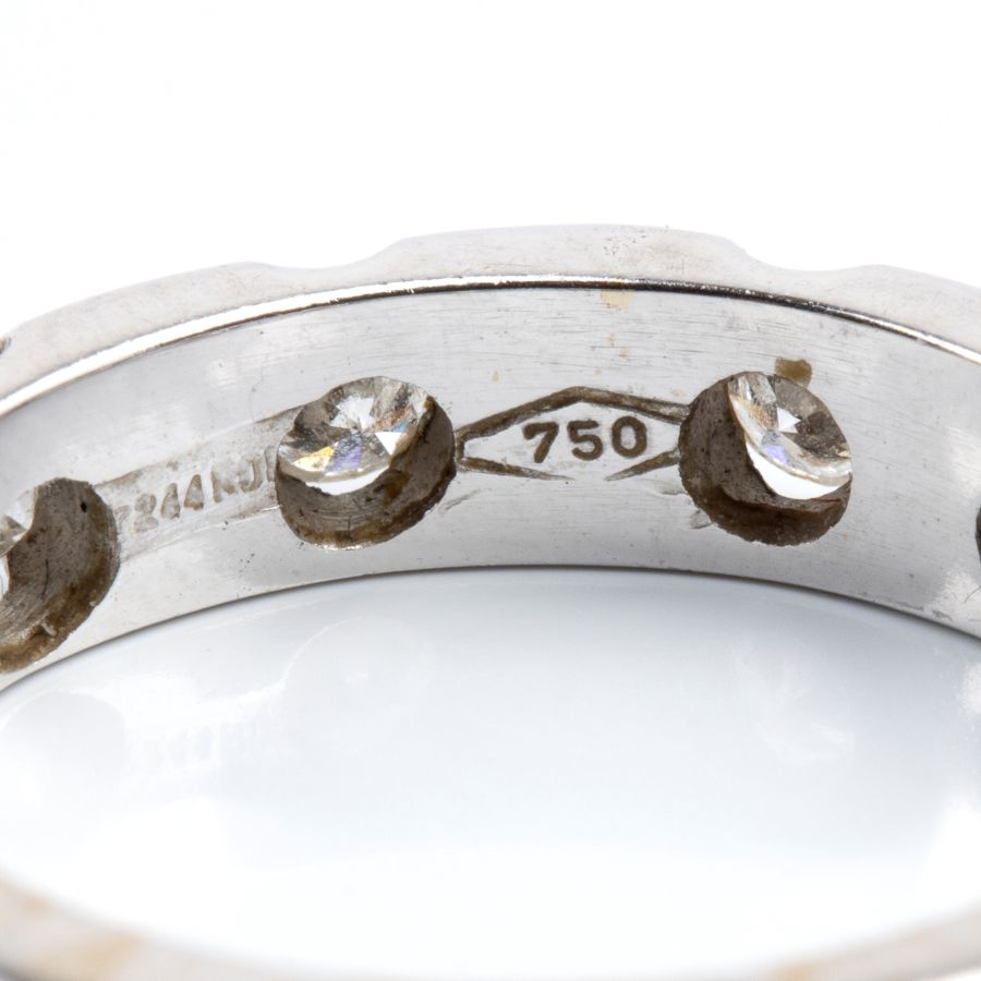 oro bianco 18k, incastonato con linea di diamanti.