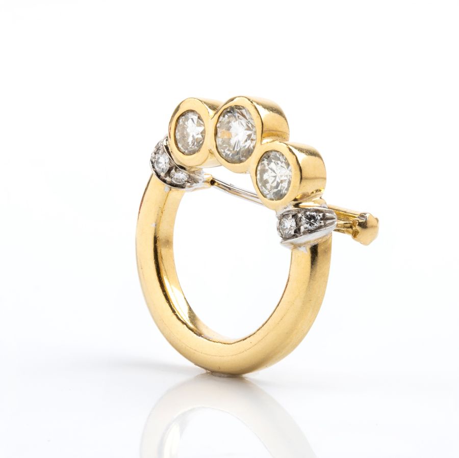 N. 03 diamanti di forma rotonda, taglio brillante, circa 0.55 ct, 0.25 ct, 0.25 ct, H-I, VS.