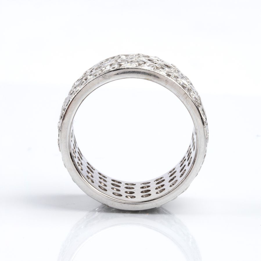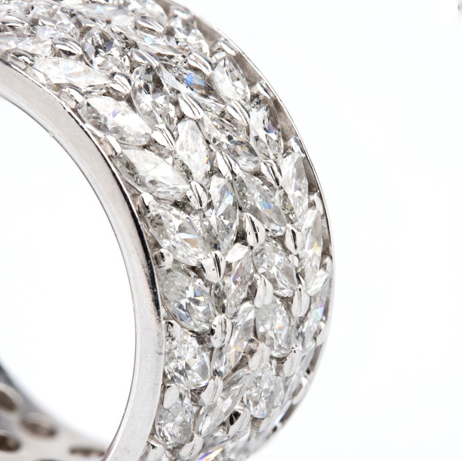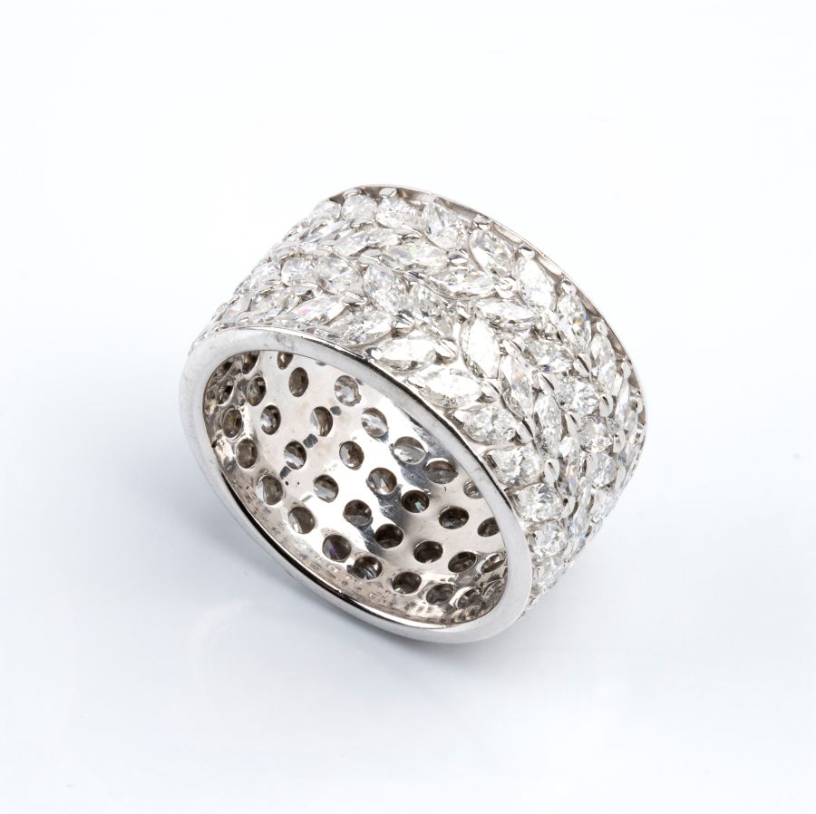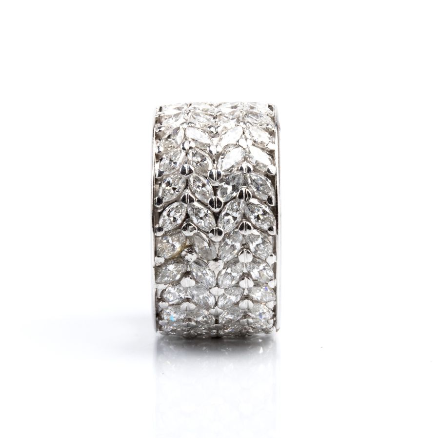 fascia traforata, incastonata con quattro file di diamanti di forma a navetta.