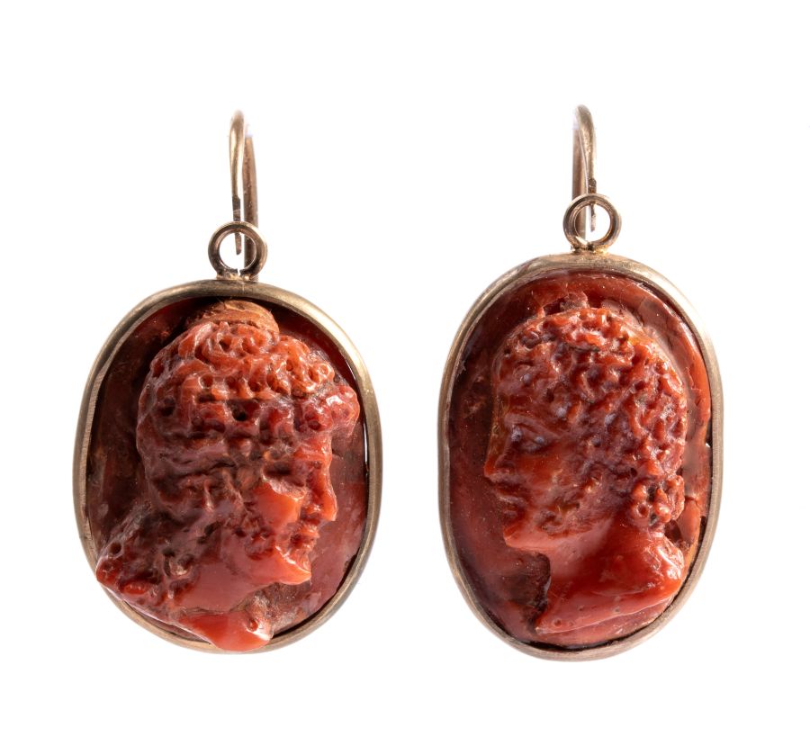 Orecchini con cammei in corallo Mediterraneo Inizio XX secolo