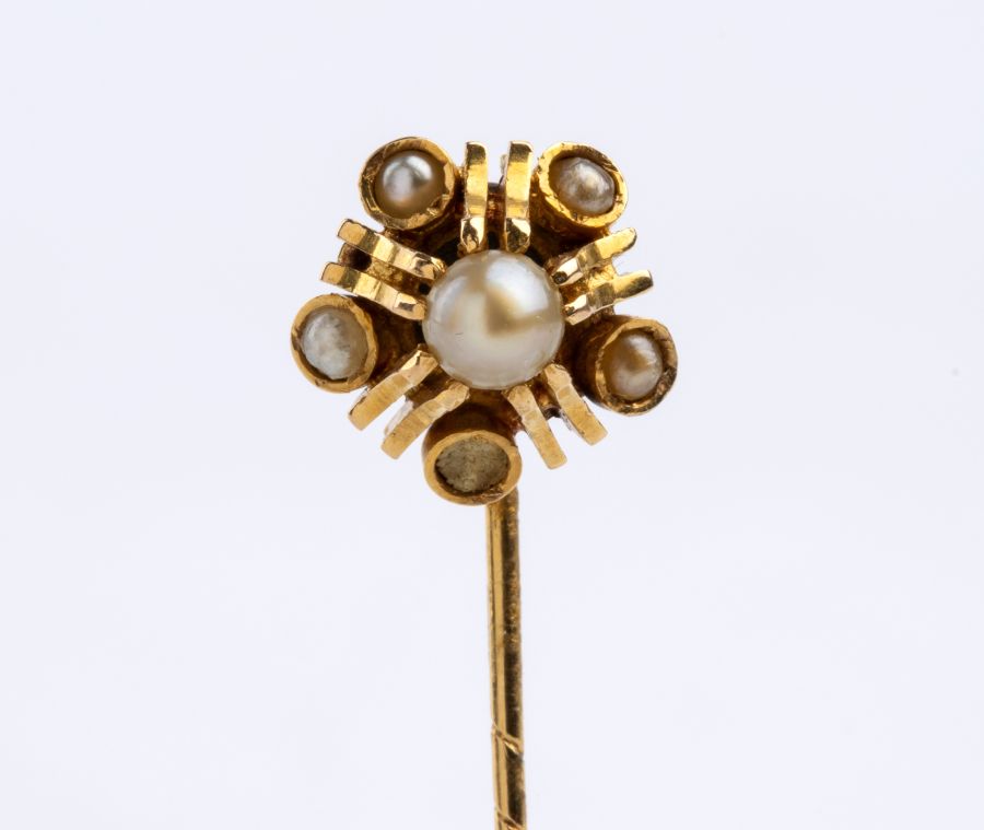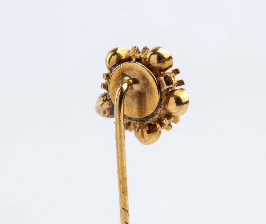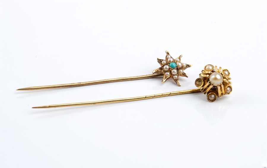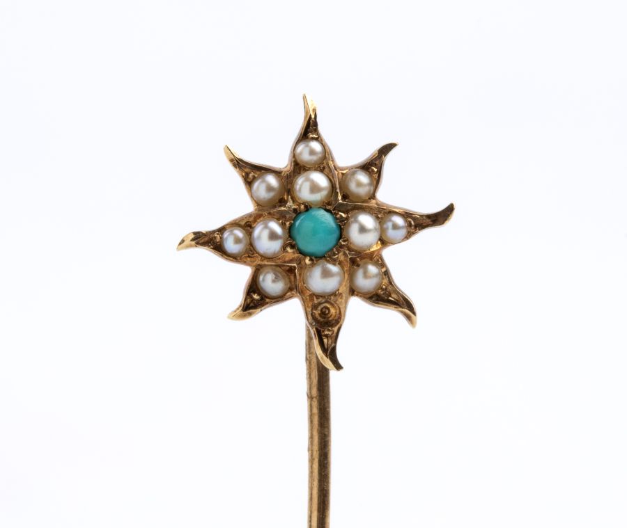 spilloni in oro con motivi floreali impreziositi da piccole perle di fiume e turchese.