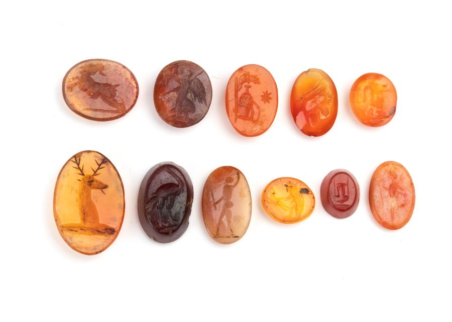 Lotto di 11 intagli in agata e corniola XIX secolo