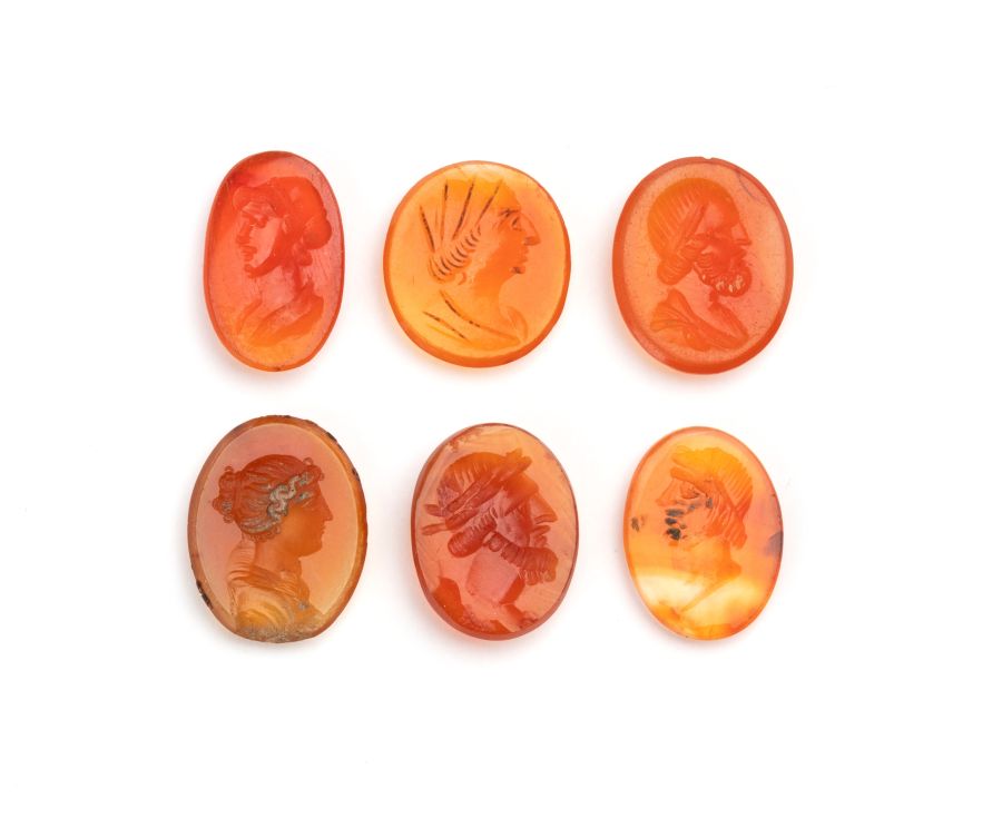 Lotto di 6 intagli in agata cornalina XIX secolo