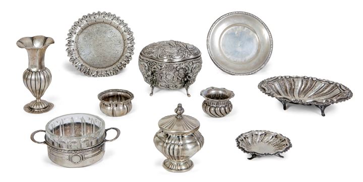 LOTTO DI DIECI OGGETTI IN ARGENTO