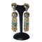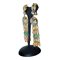 Orecchini pendenti a clip in metallo dorato con 6 fili di pietre colorate h cm 9