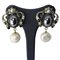 Orecchini alcozer con perla pendente, pietra centrale e piccola decorazione floreale cm 3,5