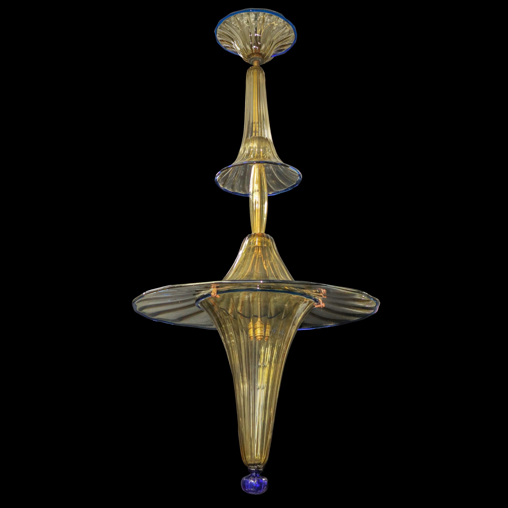 Lotto 26 | Cappellin & C. Murano - Lampadario in vetro di Murano color pagliesco con perfilo blu