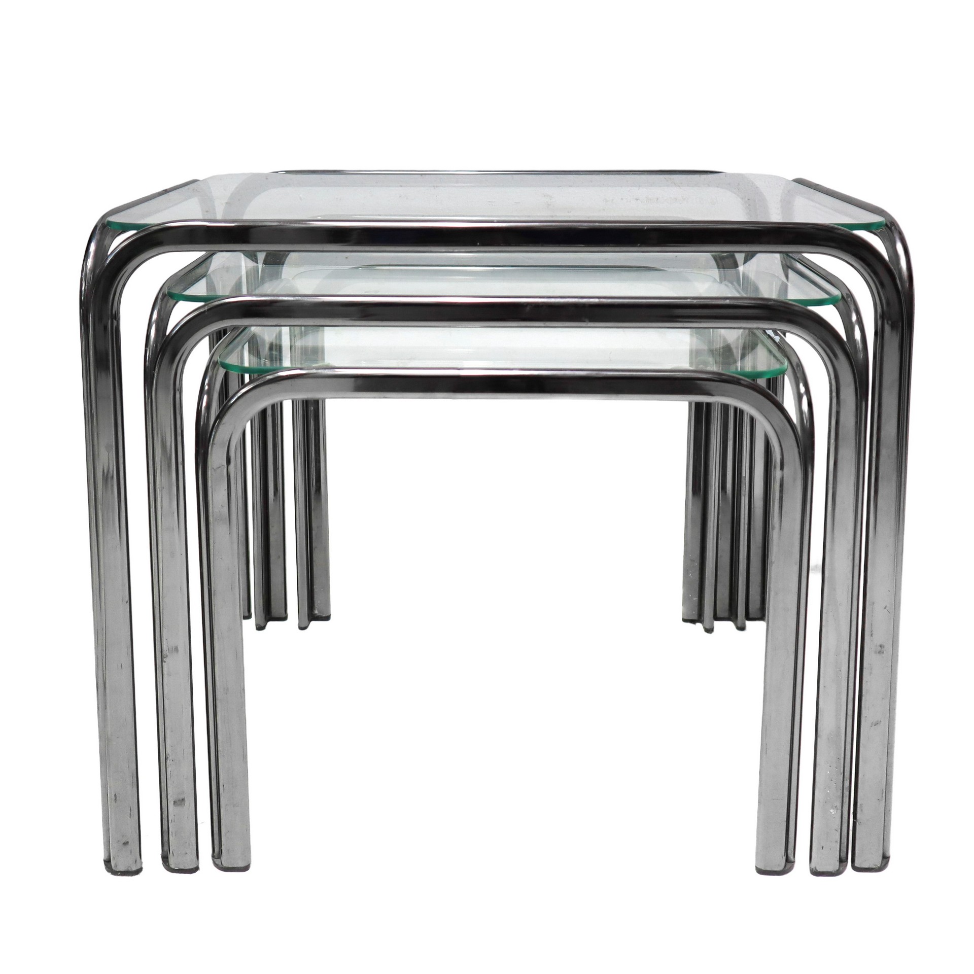 Lotto 90 | Na Design - Tris di tavolini ad incastro in metallo e vetro