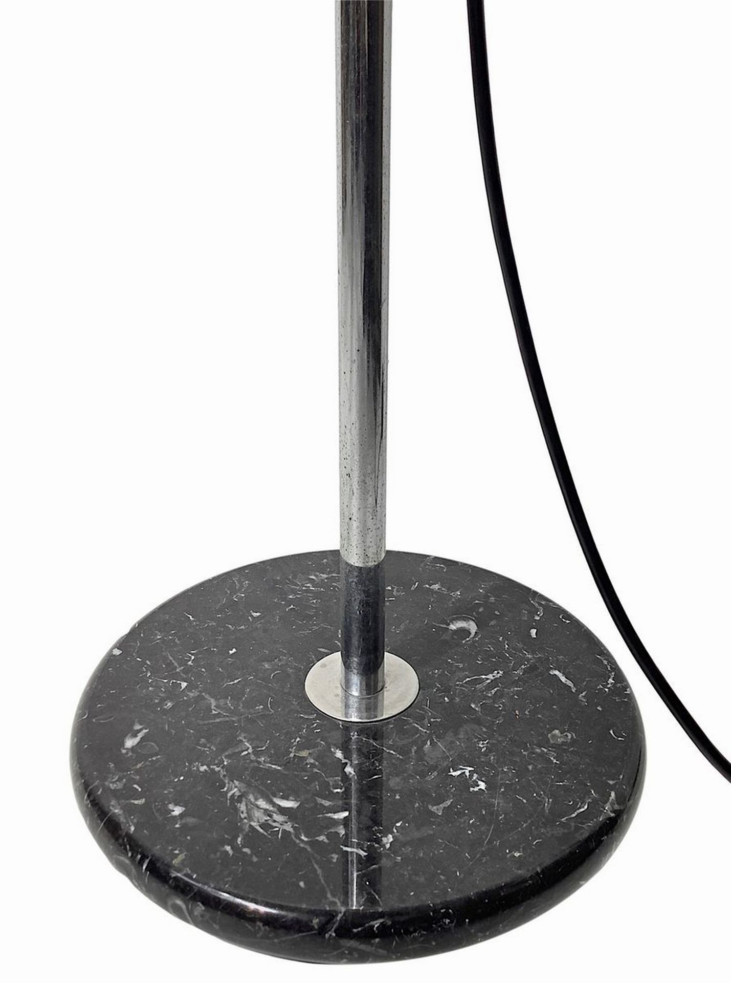 Bruno Gecchelin (1939) - Piantana modello a mezzaluna H cm 179 Produzione Skipper, con struttura tubolare cromata, base in marmo nero marquinia, illuminazione alogena.