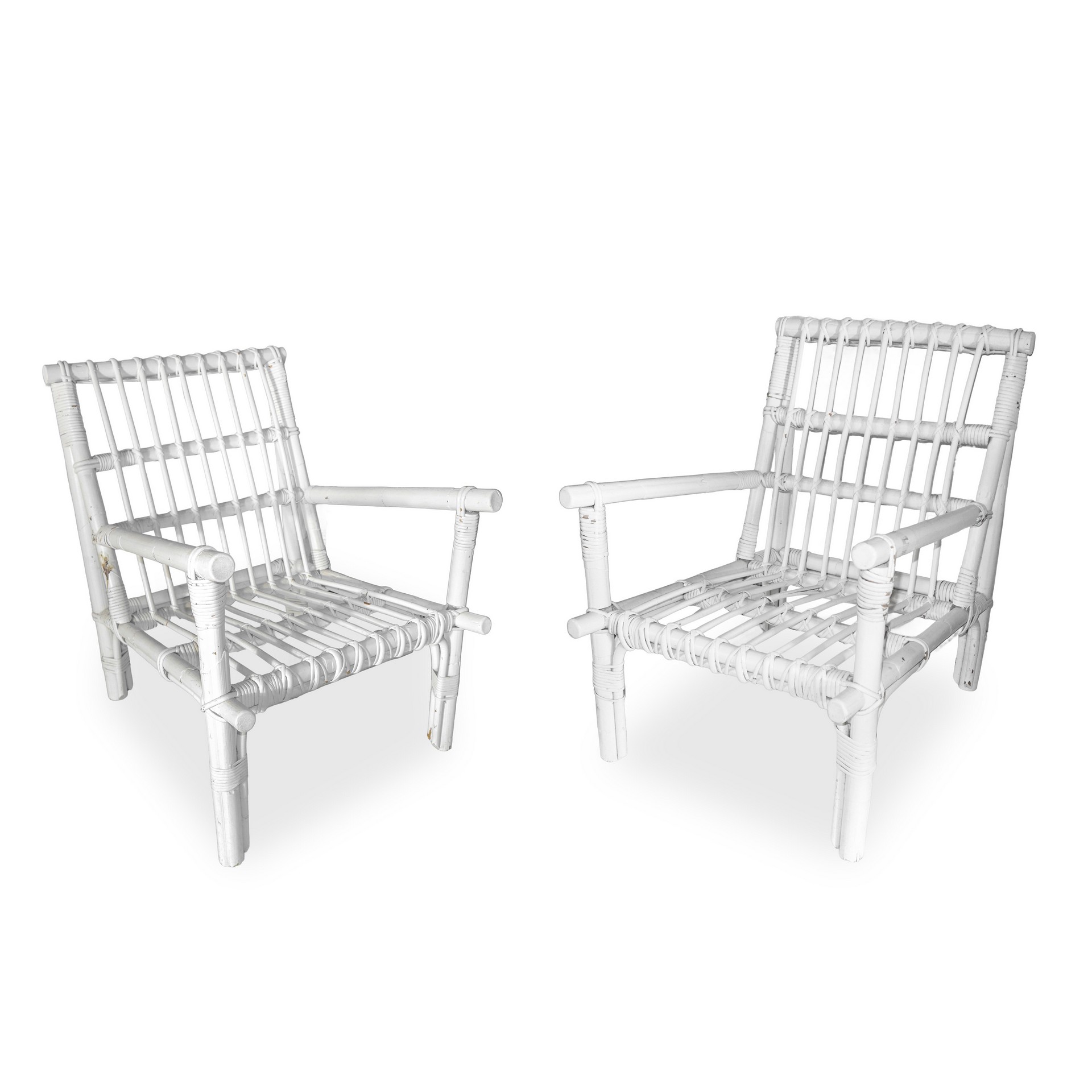 Coppia di poltrone in rattan smaltate bianche