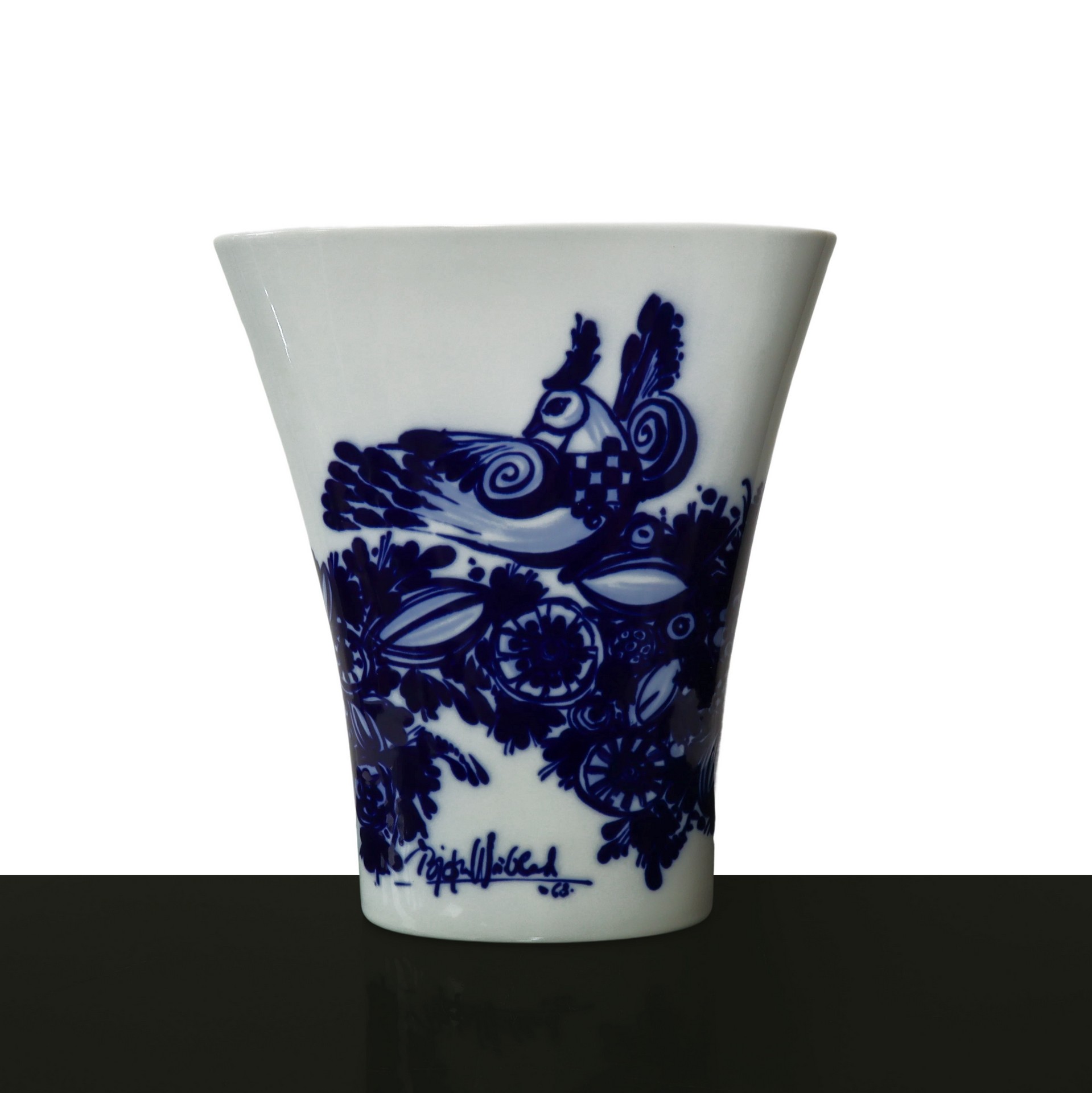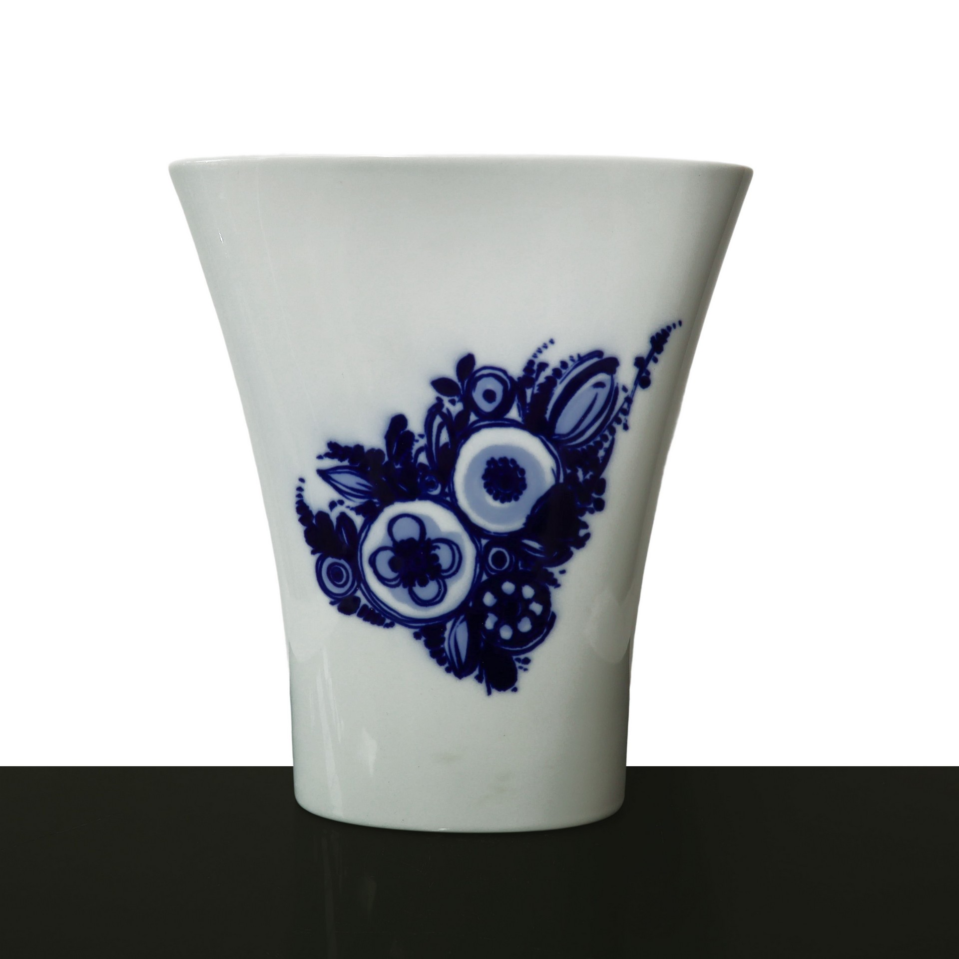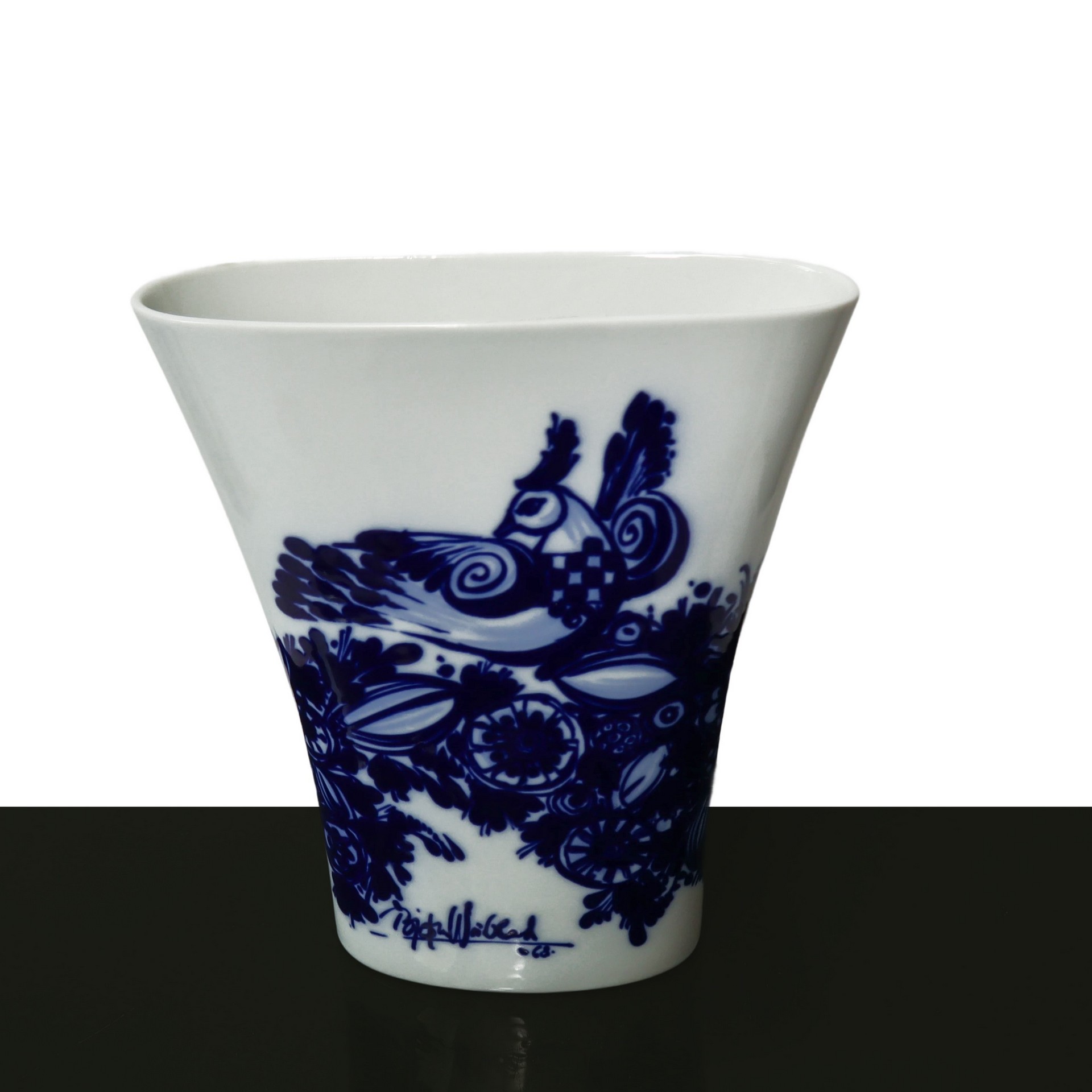Bjorn Wiinblad per Rosenthal - Vaso in porcellana con decoro di animali e fiori blu sul fronte e sul retro, 1968