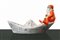 Ars Pulcra Torino - Barca di carta con uomo barbuto, scultura in terraglia a colaggio con decoro policromo.