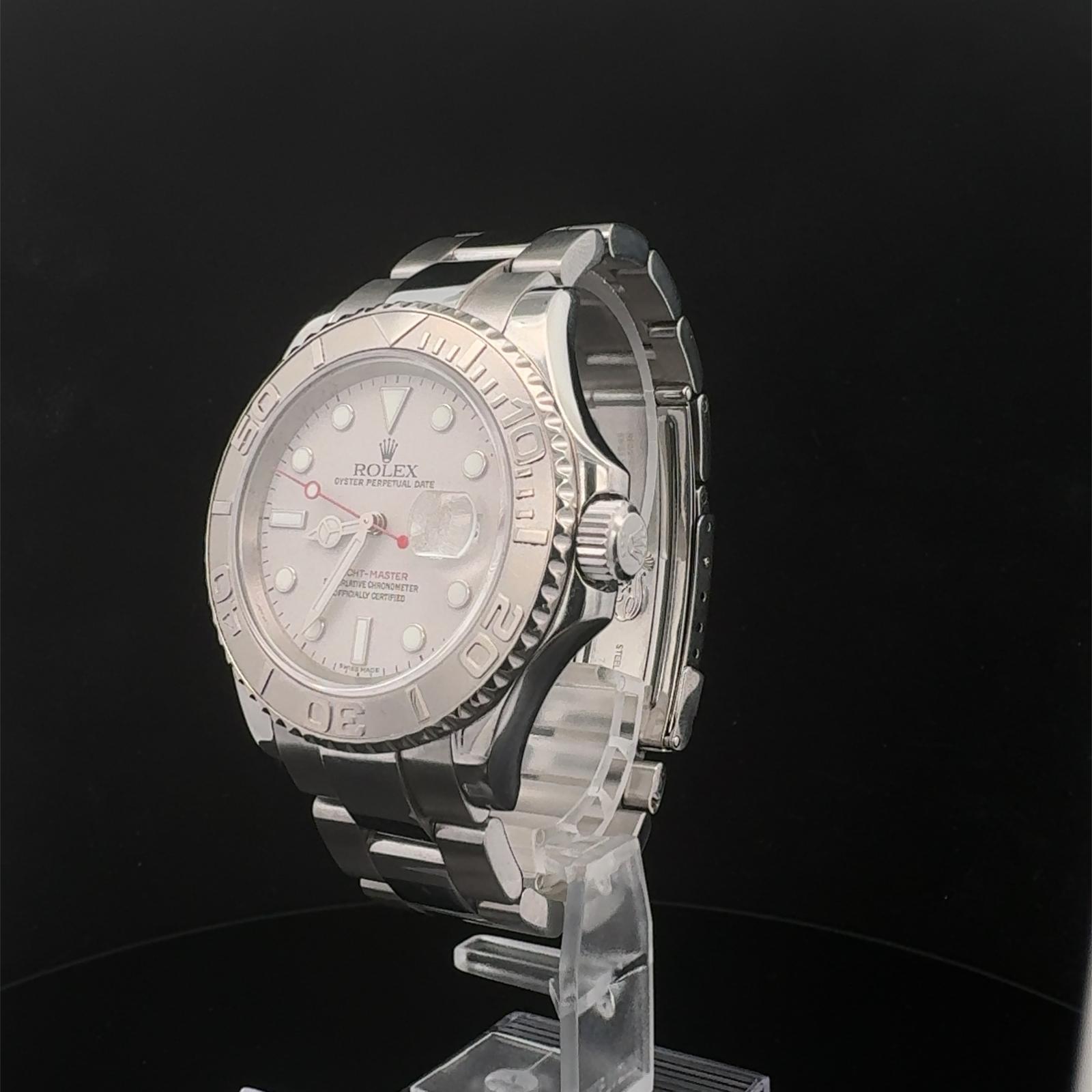Marca Rolex Modello (Orologio) Yacht-Master 40 Numero di referenza 16622 Carica Automatico Materiale della cassa Acciaio Materiale cinturino Acciaio Anno di produzione 2001 Condizione Usato (Ottimo) L'articolo presenta segni di usura lievi, come ad esempio graffi leggeri, ma non percepibili al tatto. documenti originali, no box Carica Automatico Materiale della cassa Acciaio Diametro 40 mm Impermeabile 10 ATM Materiale lunetta Platino Vetro Vetro zaffiro Quadrante Argento Numeri sul quadrante Senza numeri Cinturino Materiale cinturino Acciaio Colore cinturino Acciaio Chiusura Déployante Materiale chiusura Acciaio - COMMISSIONE D’ASTA 25%