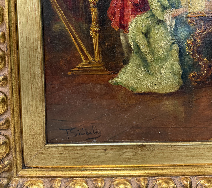SINIBALDO TORDI, "Scena d'interno", olio su tavola, dim. 40x50 cm. In allegato perizia del Dott. Gustavo Errico. Al fronte: firma in basso a sinistra. Opera con cornice