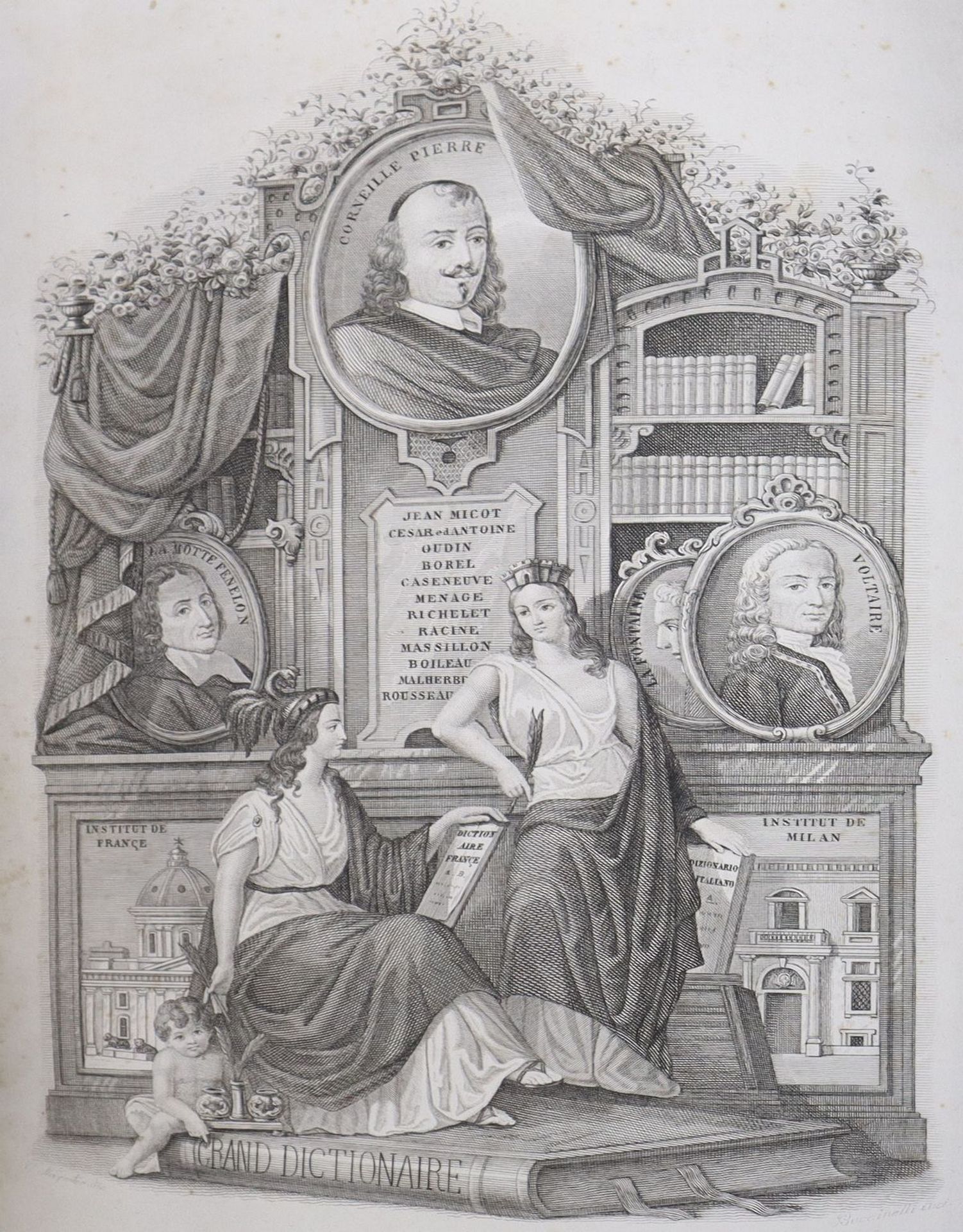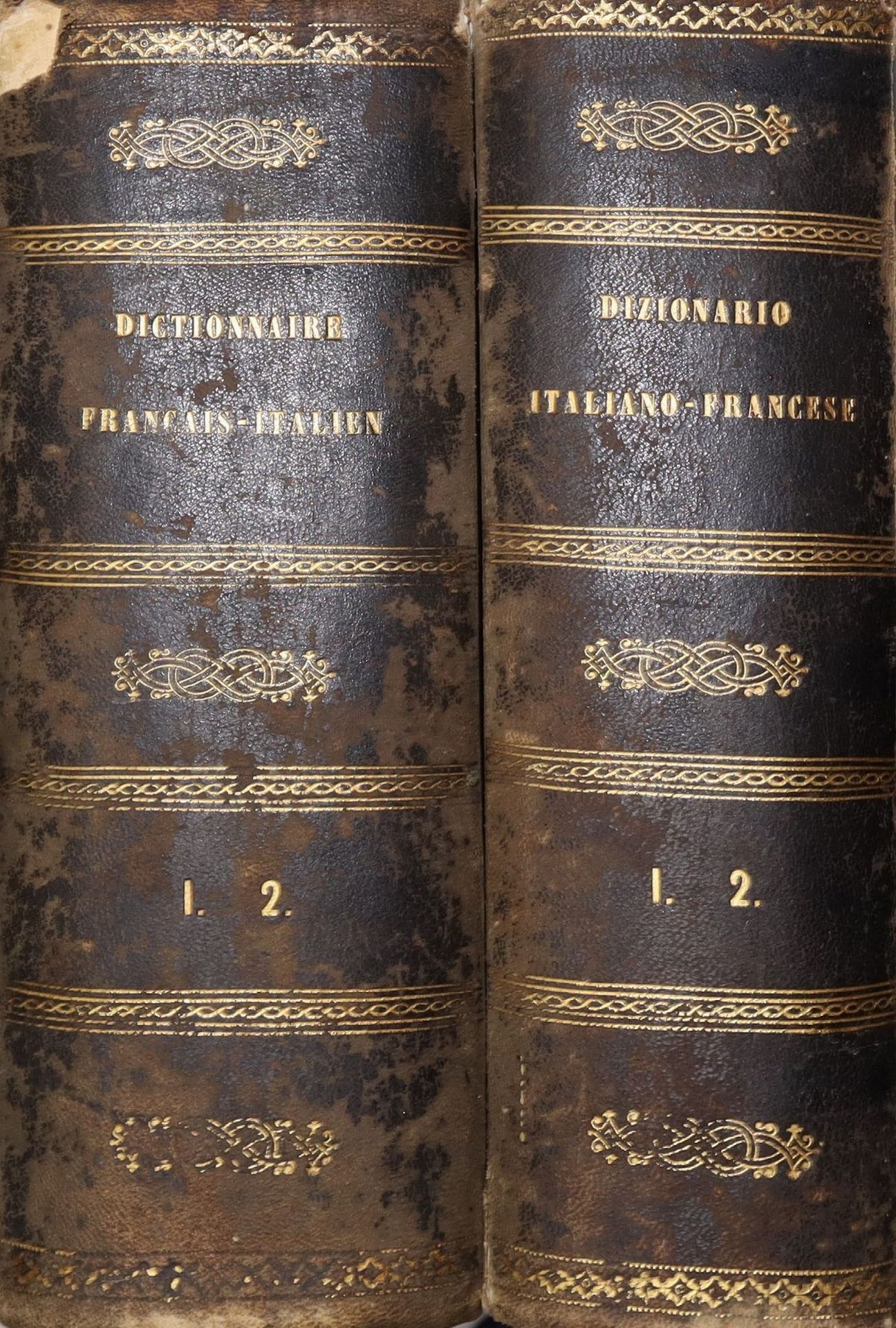 Grande dizionario italiano-francese e français-italien, 19th-20° secolo Sui dizionari dell'accademia francese e della crusca, Volume I e Volume 2. Milano, Francesco Pagnoni Editore. Presenti fioriture, opera incompleta