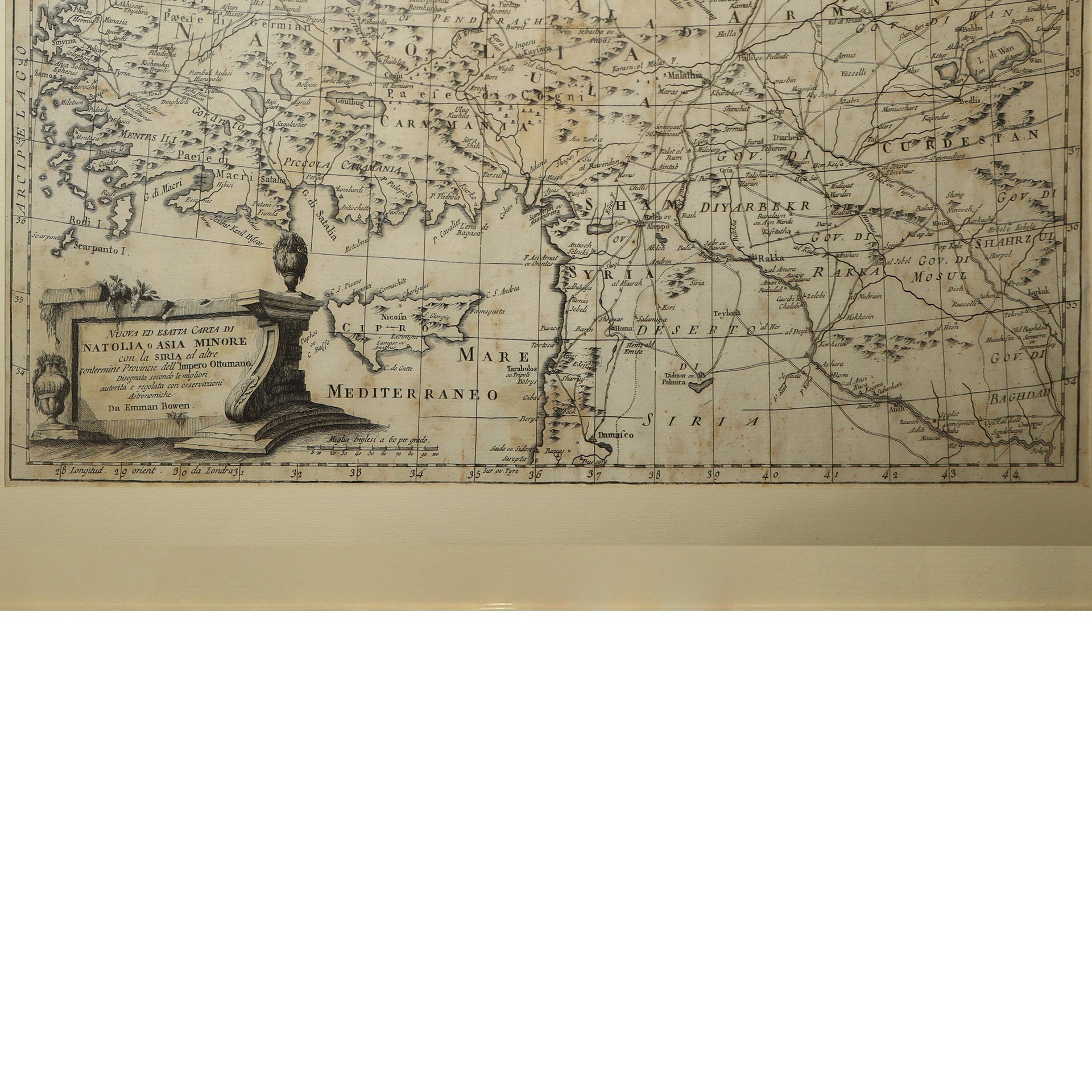 Emanuel Bowen (Inghilterra 1694 - 1967) - "Nuova ed esatta carta di Natolia e Asia Minore con la Siria e altre contermine provincie dell'impero Ottomano" h mm 335X420 in cornice h cm 49X57