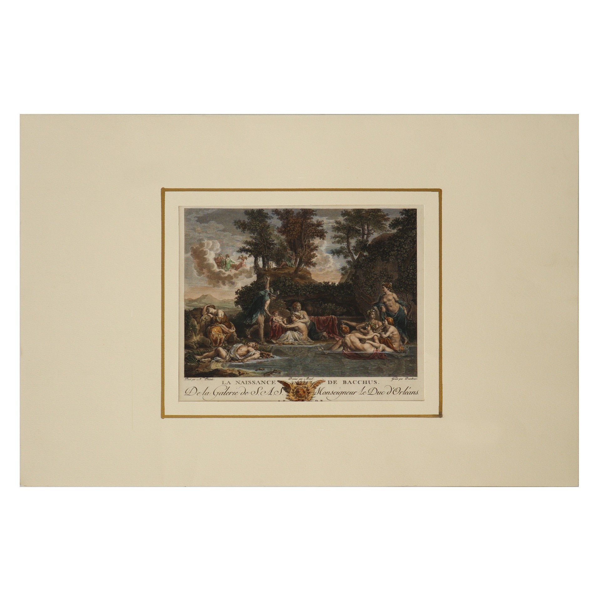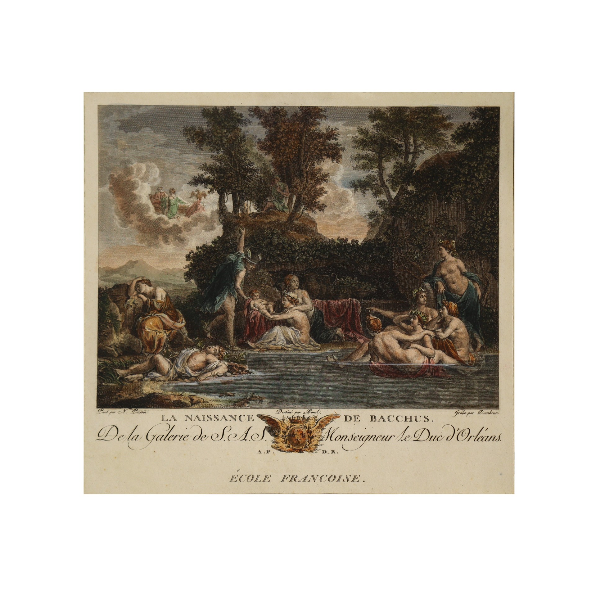 Jean Dambrun (1741 - 1808) - Incisione da Poussin della nascita di Bacco h mm 211X224 incisione acquerellata Incisore Dambrun