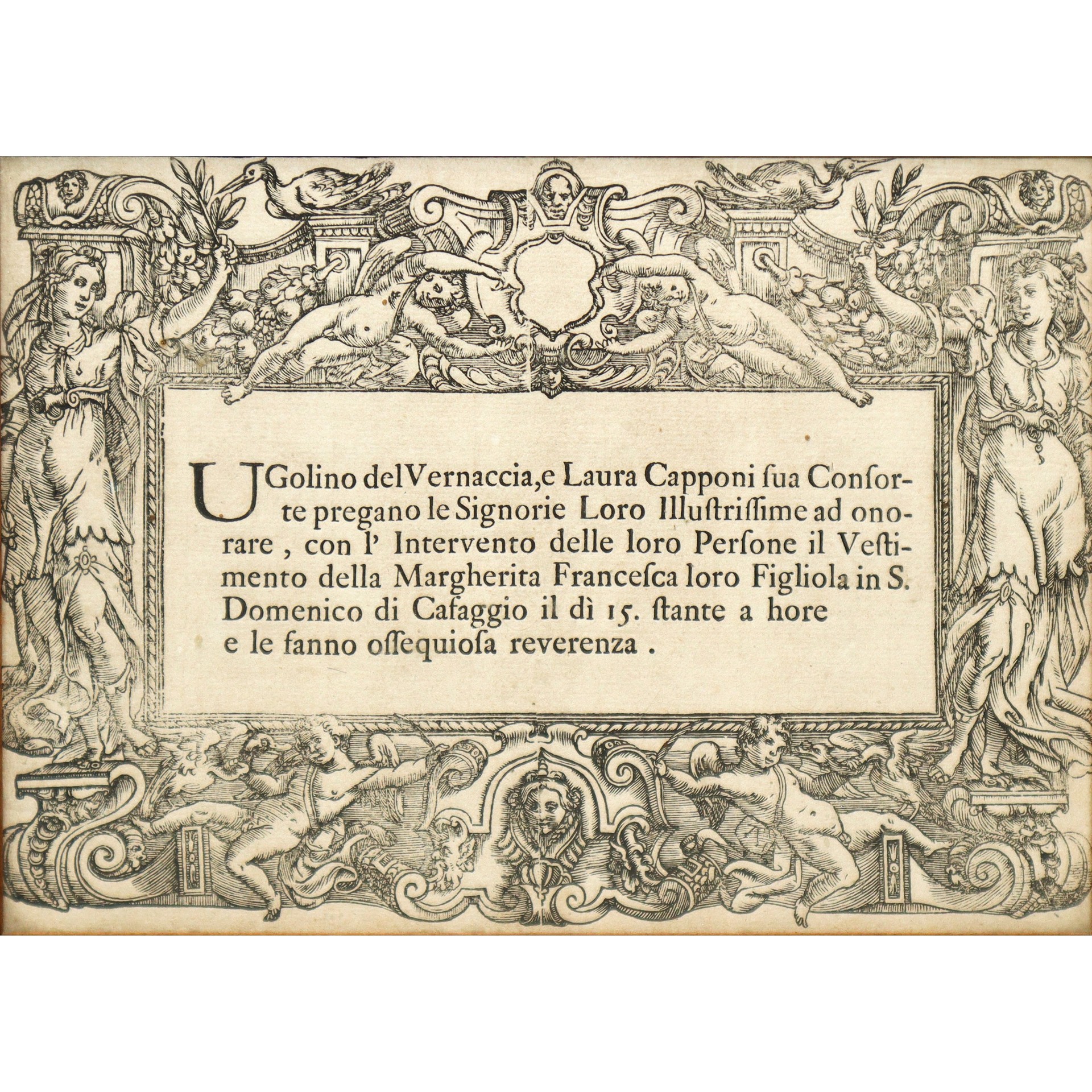 Invito alla vestizione di Margherita Francesca, inviata da Ugolino del Vernaccia e Laura Capponi H cm 16x22 - in cornice H cm 24,5x30,5