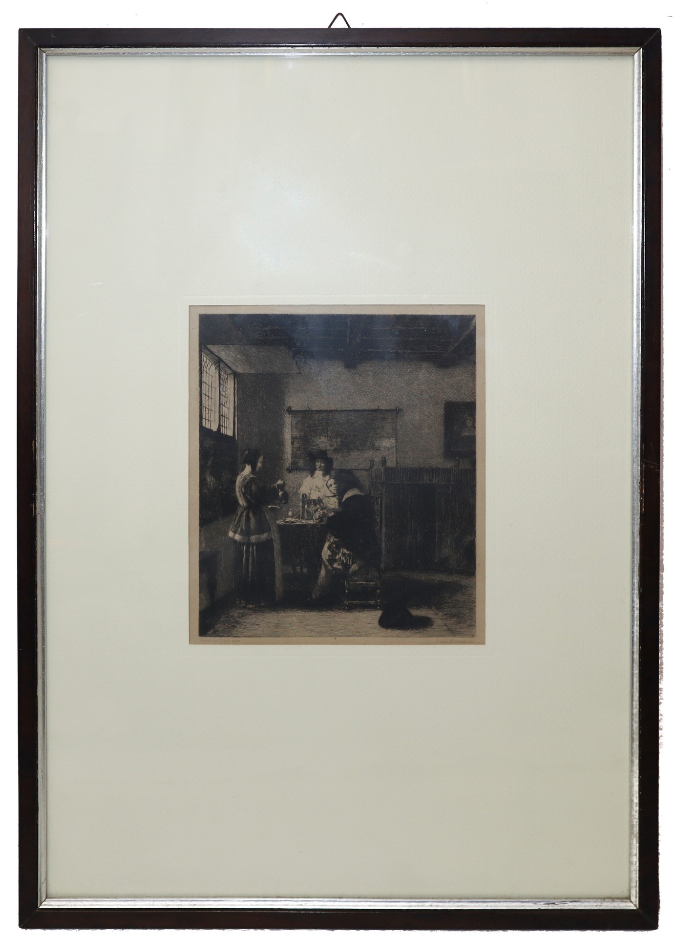 Daniel Mordant (Quimper 1853 - 1914) - La visita, da Pieter de Hooch, 19° secolo cm 19,5 x cm 17, in cornice cm 52 x cm 37 Incisione ad acquaforte e acquatinta