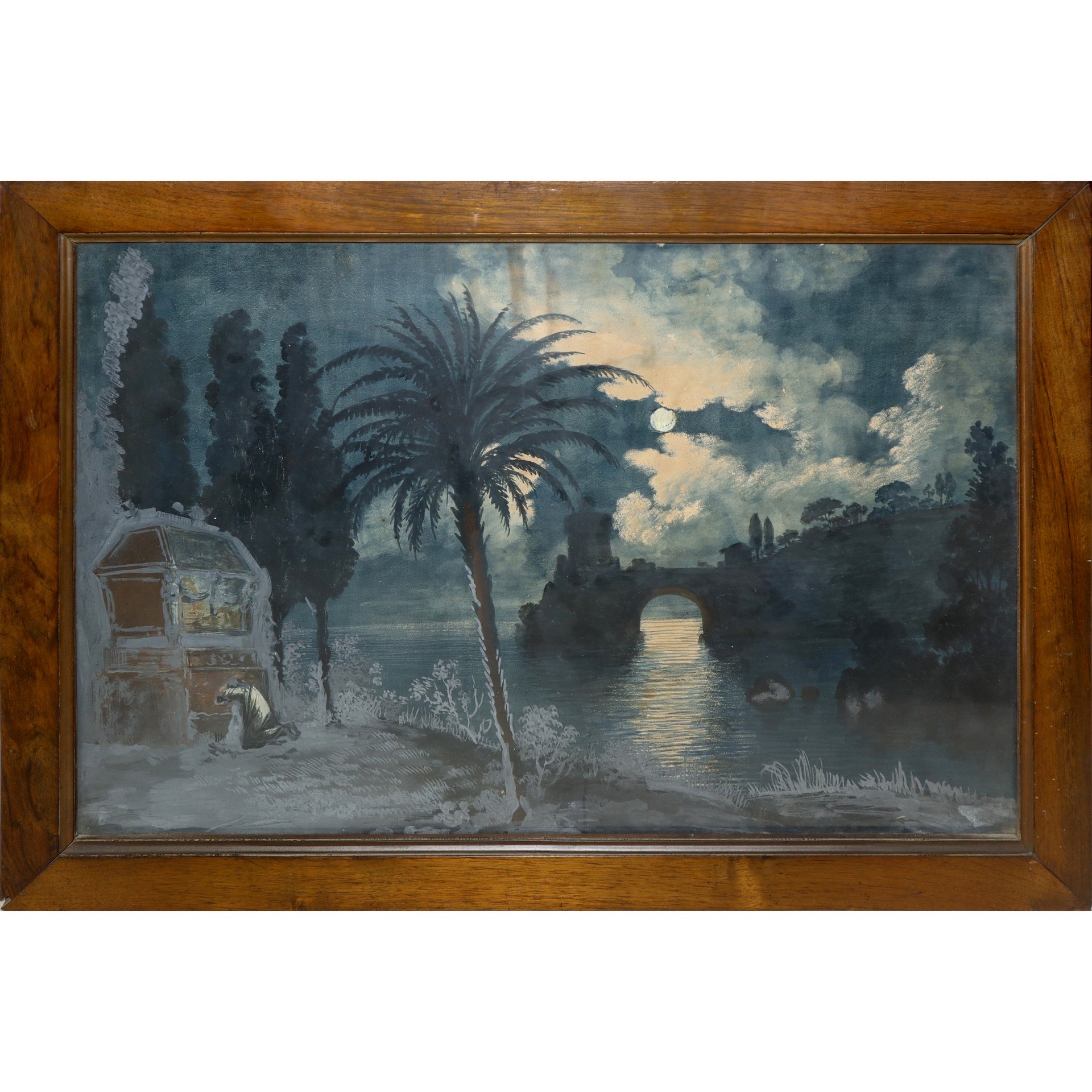 Paesaggio notturno con luna, late 19° secolo cm h 46X67 in cornice cm h 55X77 Guache su cartoncino