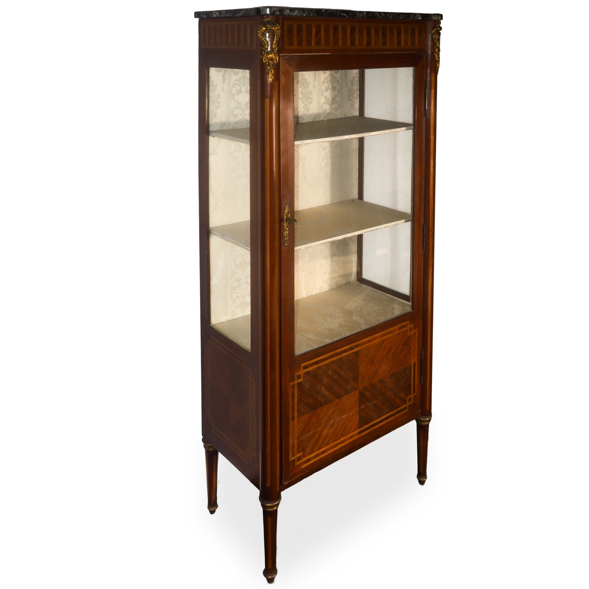 Vetrina con marmo nero sulla parte sommitale e bronzi dorati applicati ai lati, late 19° secolo H cm 157 x l 70 x 39