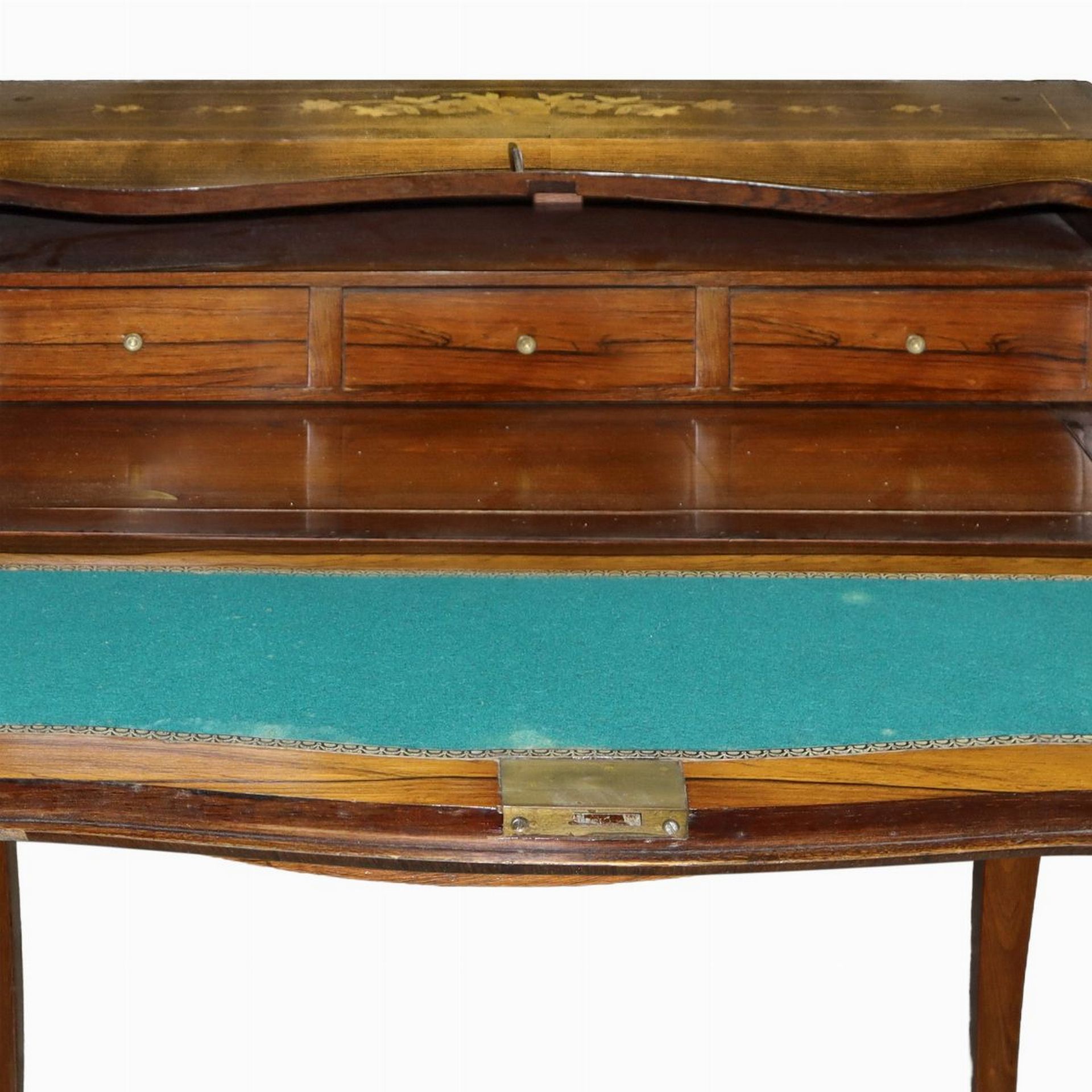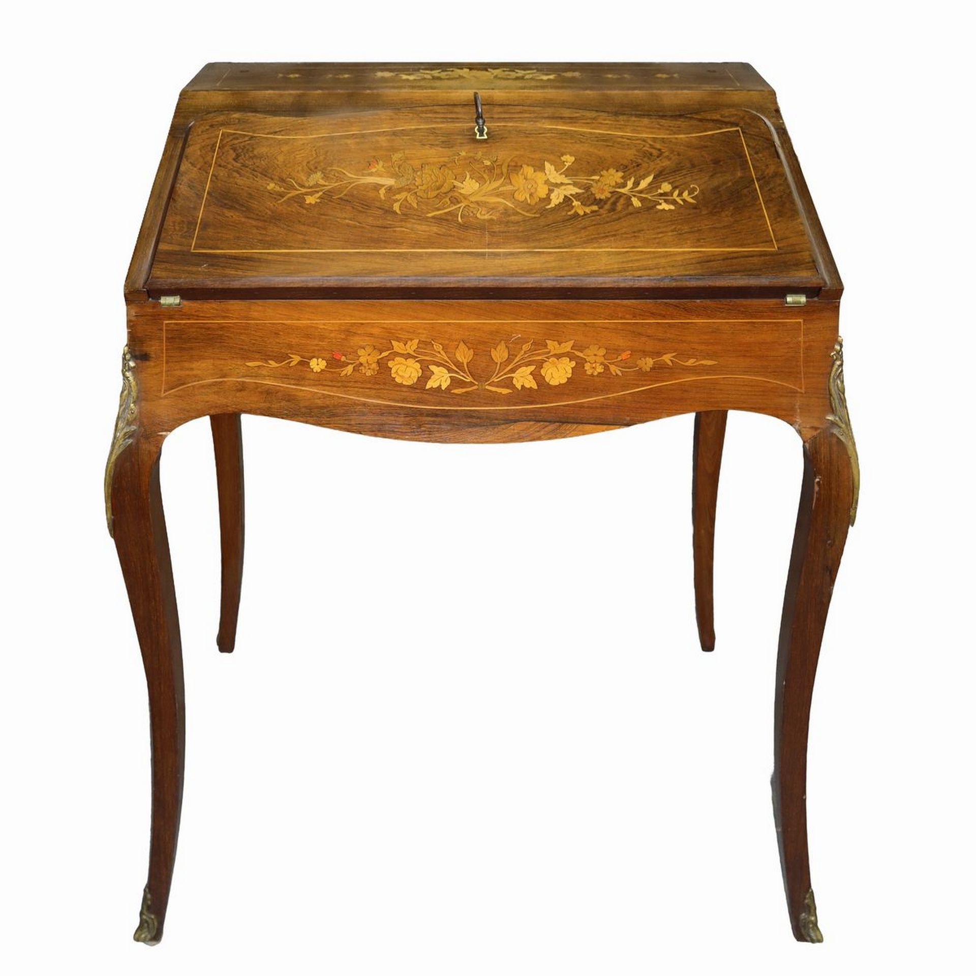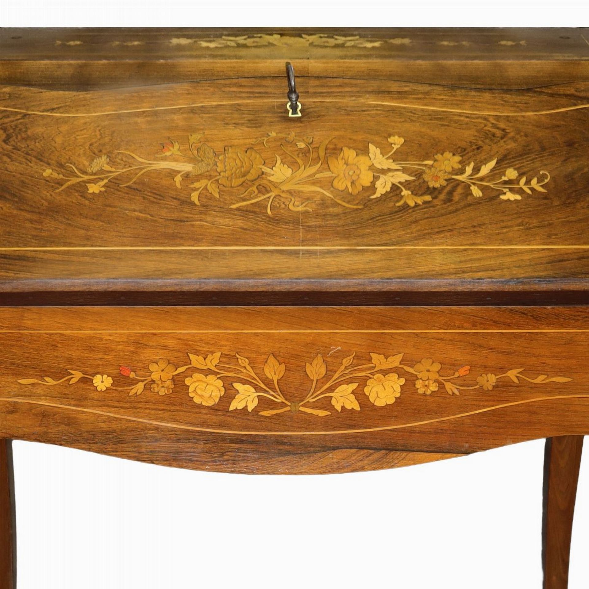 Ribaltina intarsiata a motivi floreali, 19° secolo H cm 89x71x44 Con calatoia e interno con piccoli cassetti
