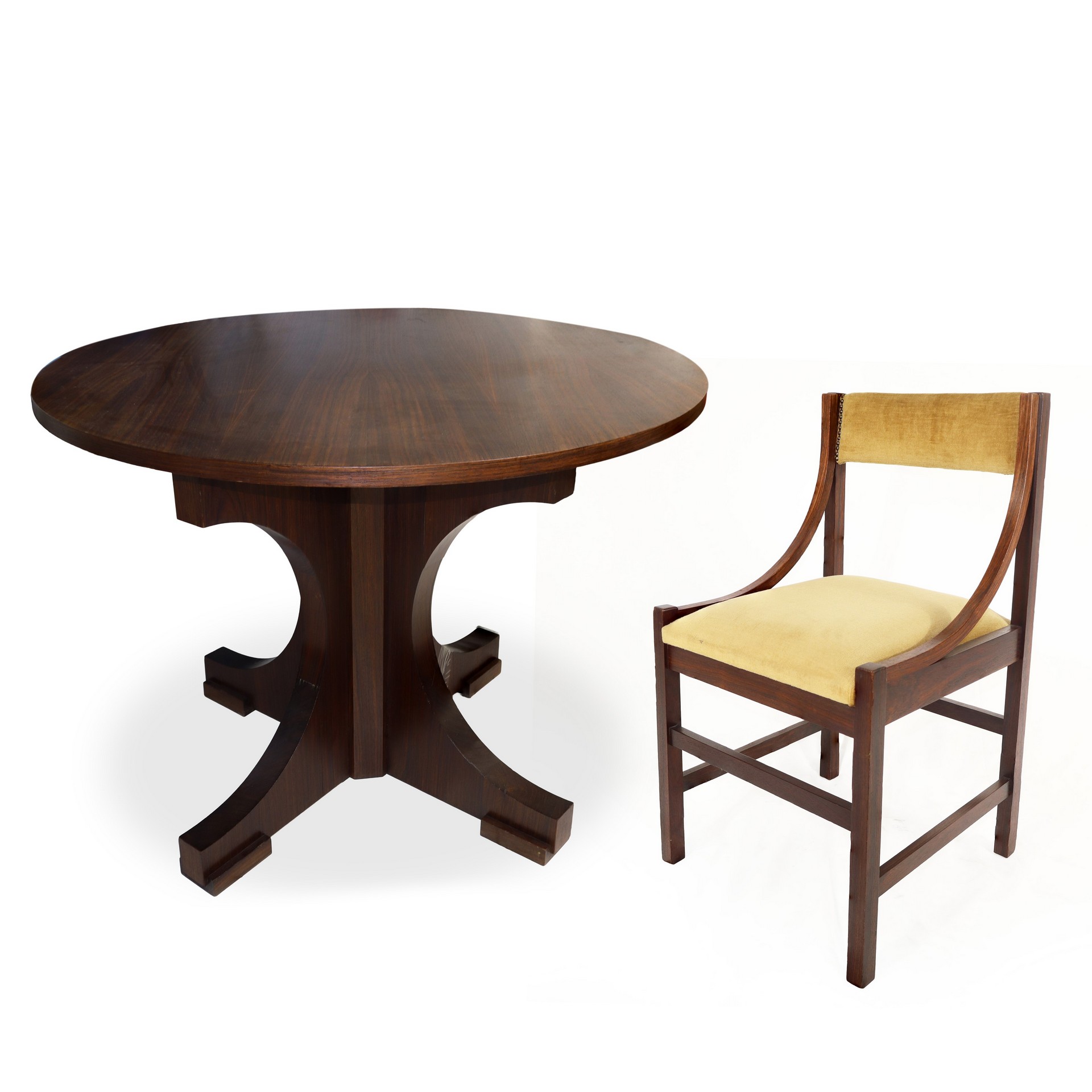 Tavolo in teak dotato di 4 sedie con tappezzeria beige tavolo h cm 78 diametro cm 105,5 sedie h cm 80X46X43