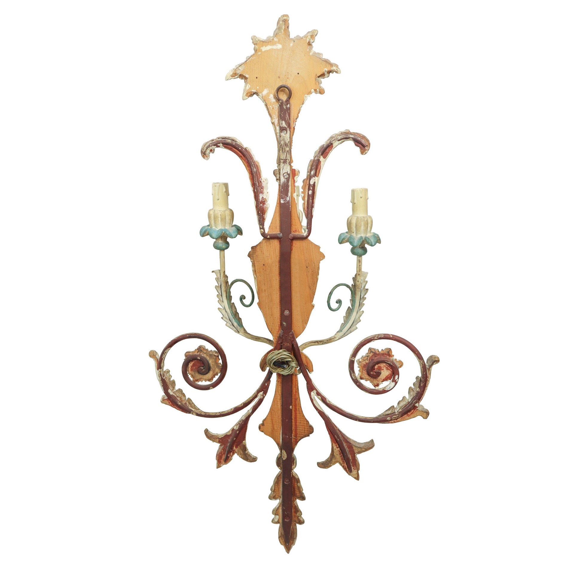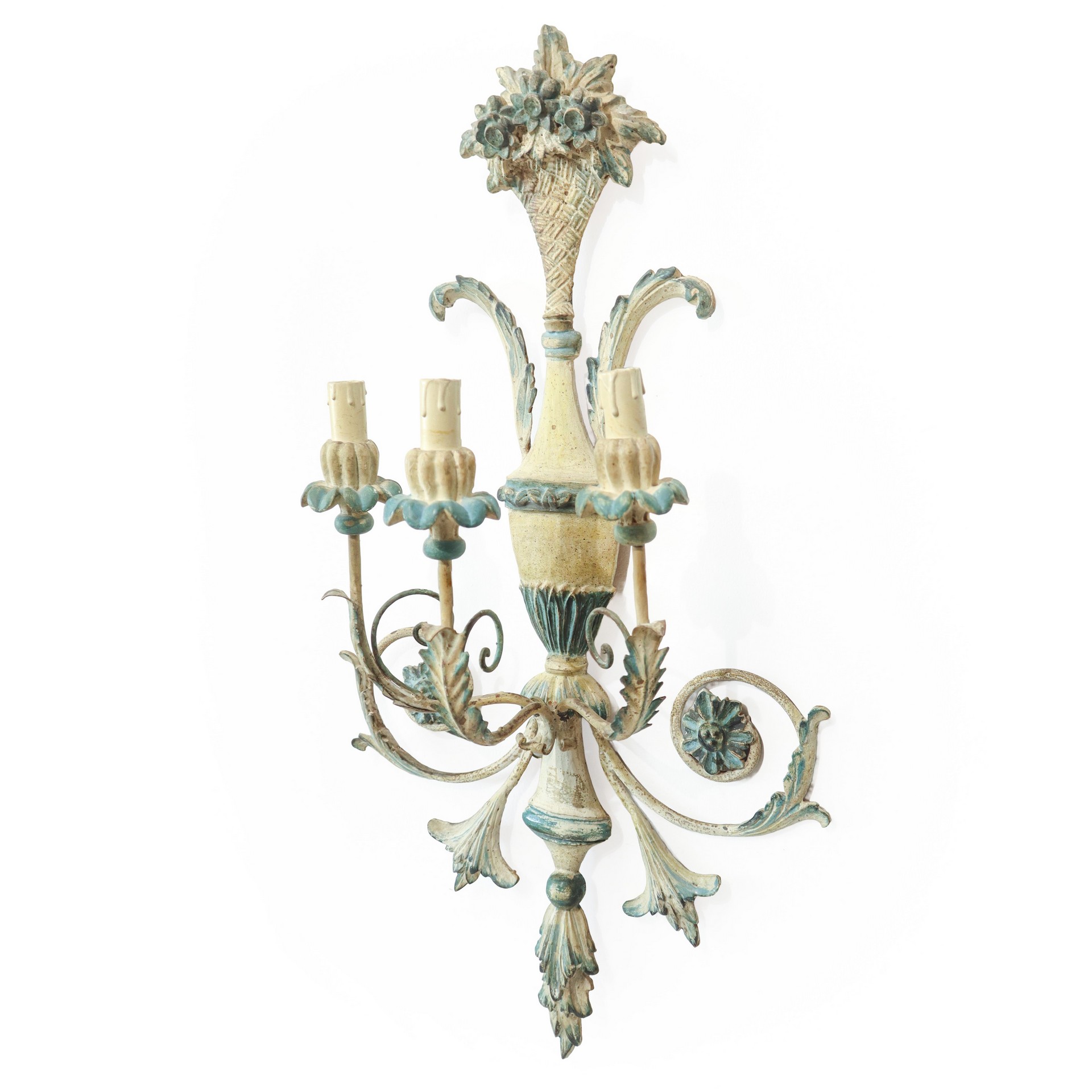 Coppia di appliques in legno colorato celeste e bianco h cm 79X44X19