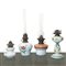 Set di 4 lampade ad olio con base in porcellana dipinta policroma