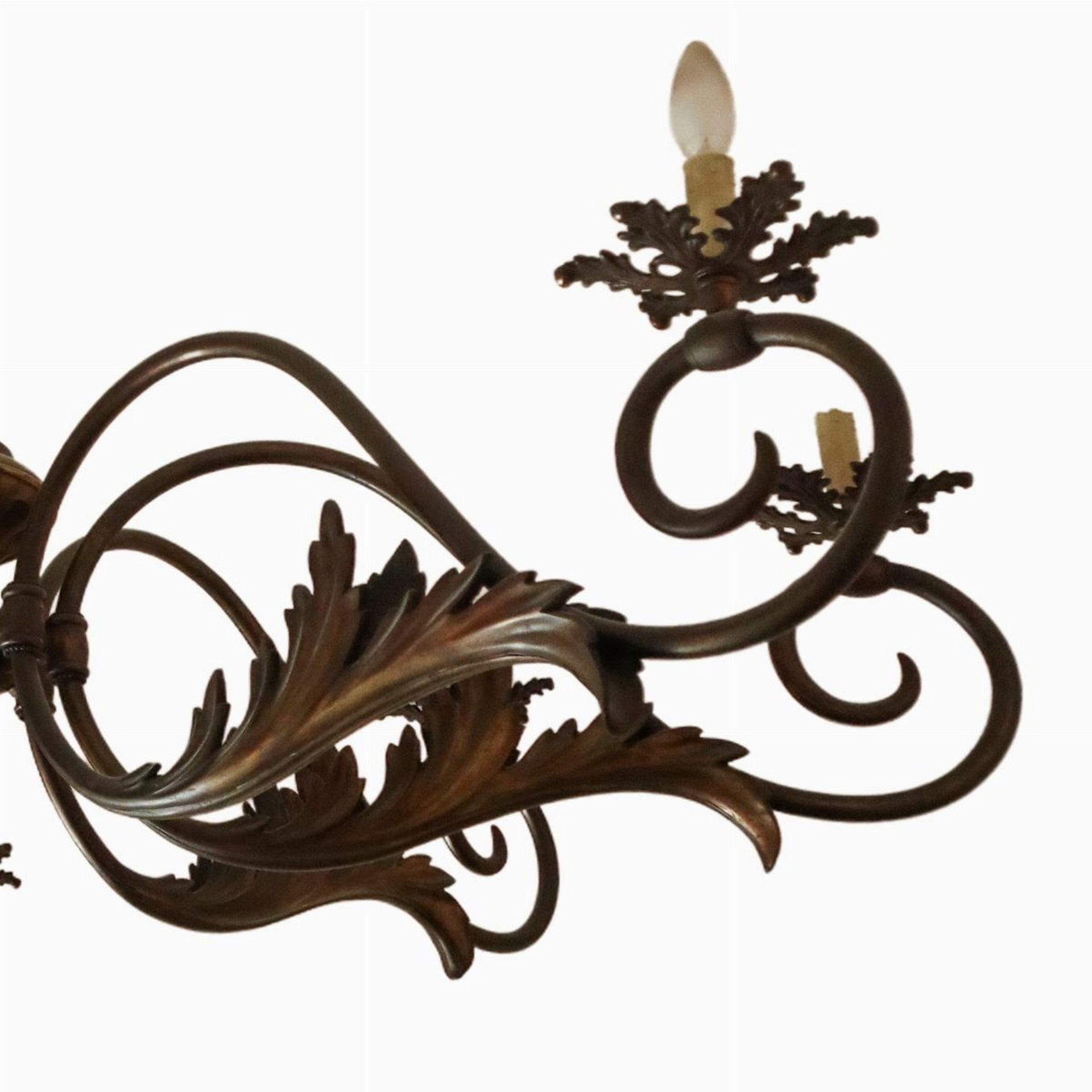 * Lampadario 8 luci in metallo brunito lavorato a mano e alla forgia, Early 20° secolo h cm 120 x l 150