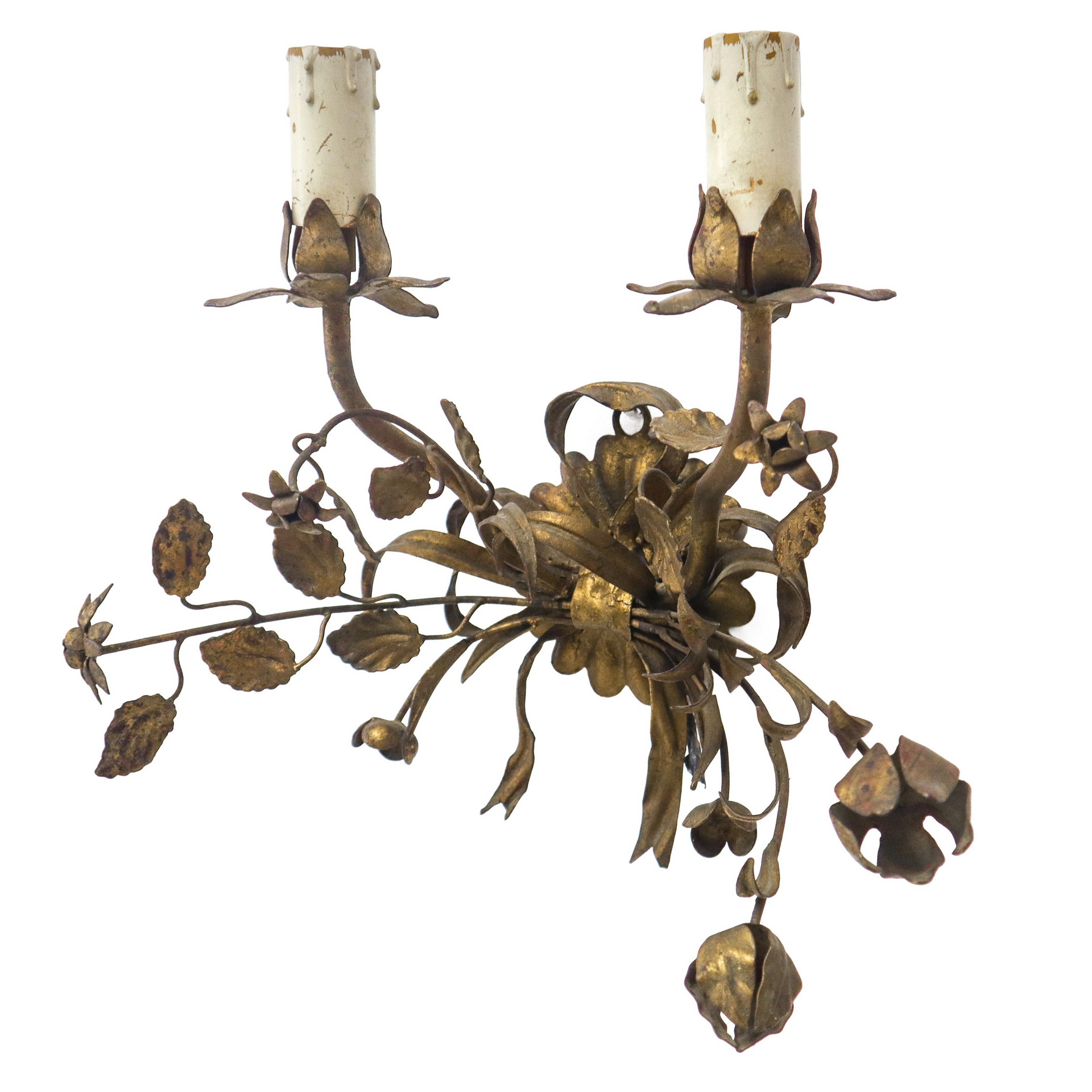 N°3 Appliques a due luci in metallo dorato, early 20° secolo